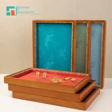 | Anel de madeira maciça bandeja de visualização de jóias tendência nacional retro pingente brinco pulseira bandeja de armazenamento adereços exibição bandeja de jóias |