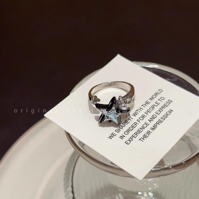 Estrela olho de gato pedra anel aberto feminino ins personalidade casal anel de dedo indicador moda nicho design high-end anel