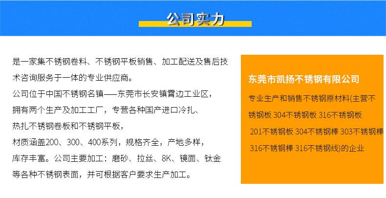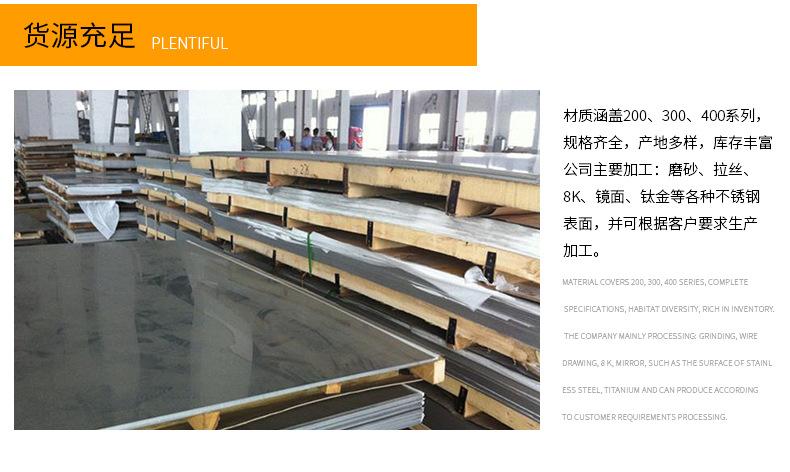 é uma empresa especializada na produção e venda de matérias-primas de aço inoxidável (principalmente placas de aço inoxidável 304 placas de aço inoxidável 316 placas de aço inoxidável 201 placas de aço inoxidável 304 barras de aço inoxidável 303 barras de aço inoxidável 316 aço inoxidável barras de aço 316 fios de aço inoxidável). É um fornecedor profissional que integra vendas, processamento e distribuição de bobinas e placas planas de aço inoxidável, bem como serviços de consultoria técnica pós-venda. A empresa está localizada na Zona Industrial Xiaobian, cidade de Chang'an, cidade de Dongguan, uma famosa cidade de aço inoxidável na China. Possui duas fábricas de produção e processamento, especializadas em diversas bobinas de aço inoxidável laminadas a frio e a quente nacionais e importadas e placas planas de aço inoxidável. Os materiais abrangem as séries 200, 300 e 400, com especificações completas, origens diversas e estoque abundante. A empresa processa principalmente várias superfícies de aço inoxidável, como fosco, escovado, 8K, espelho, titânio, etc., e pode produzir e processar de acordo com as necessidades do cliente.