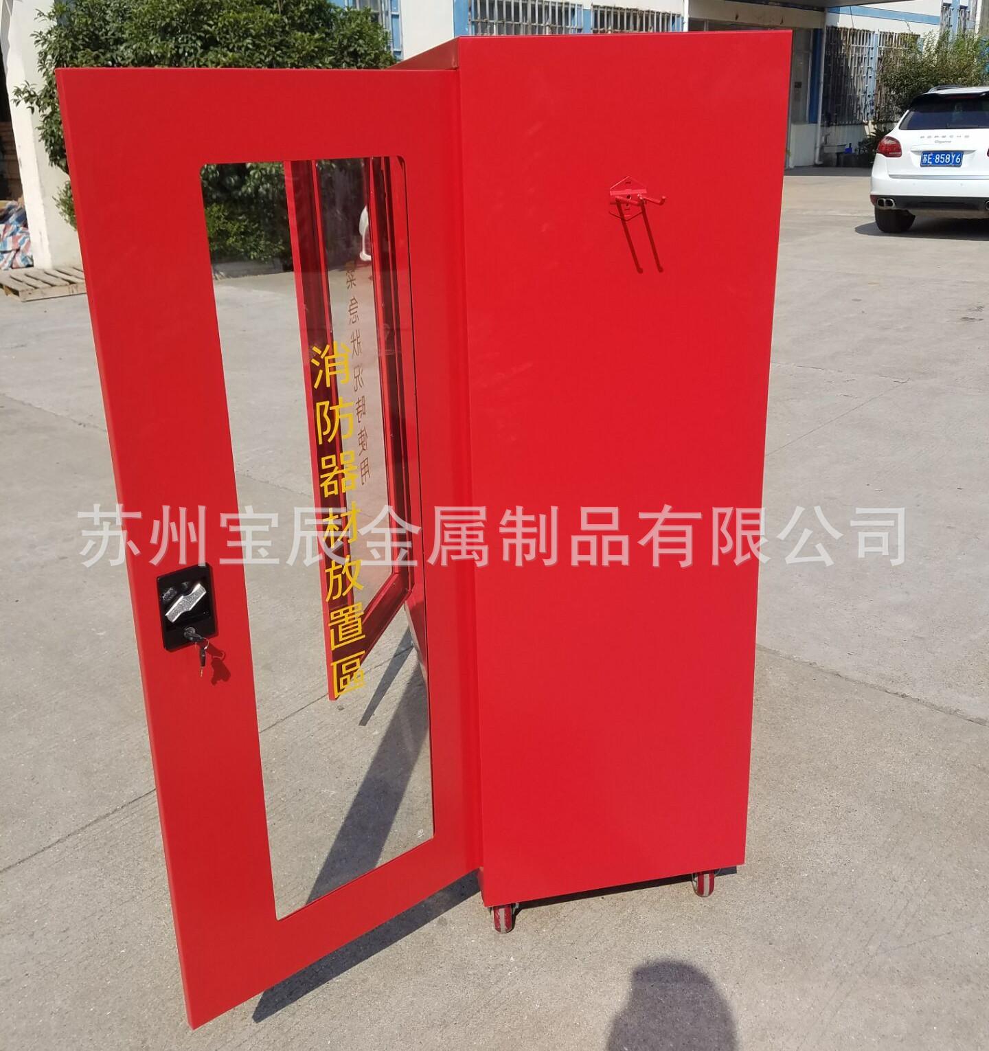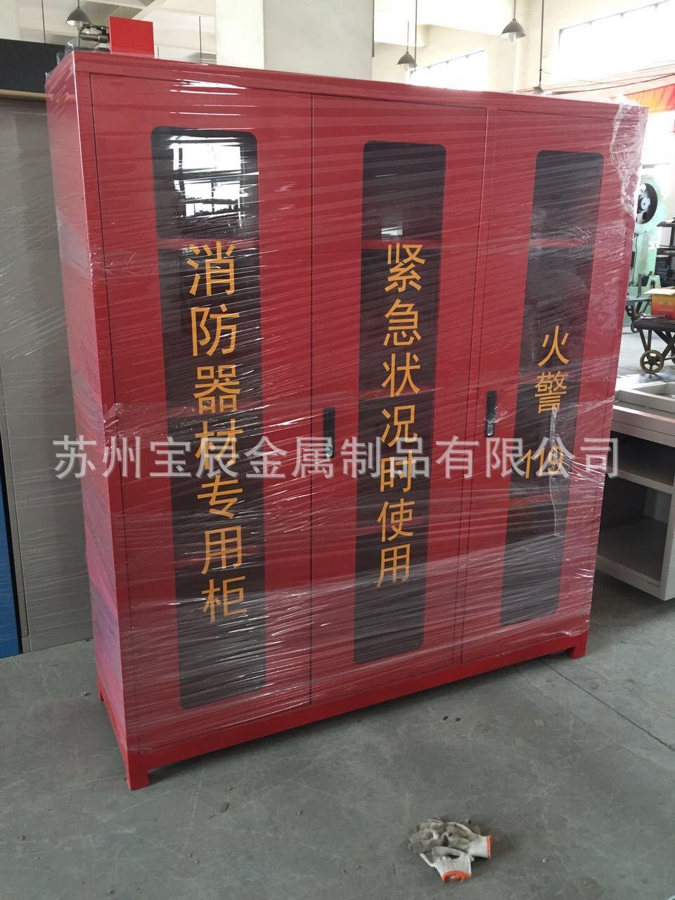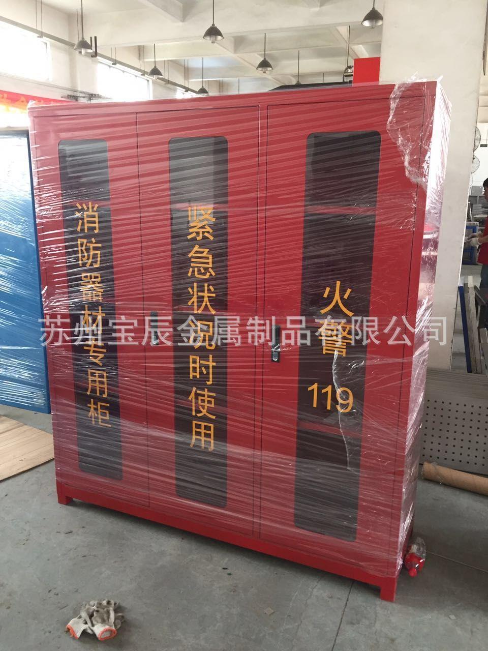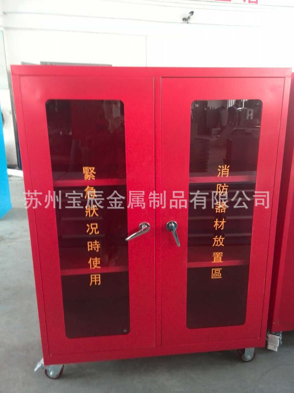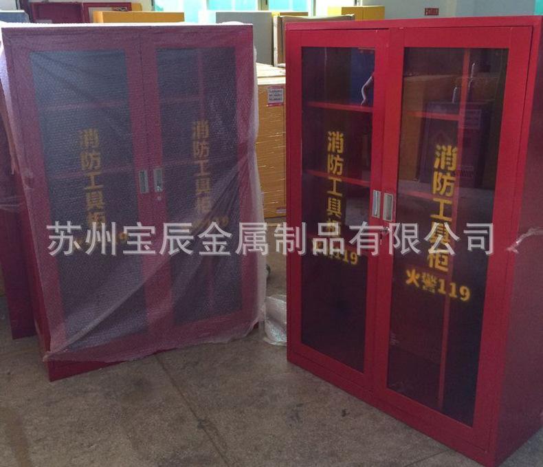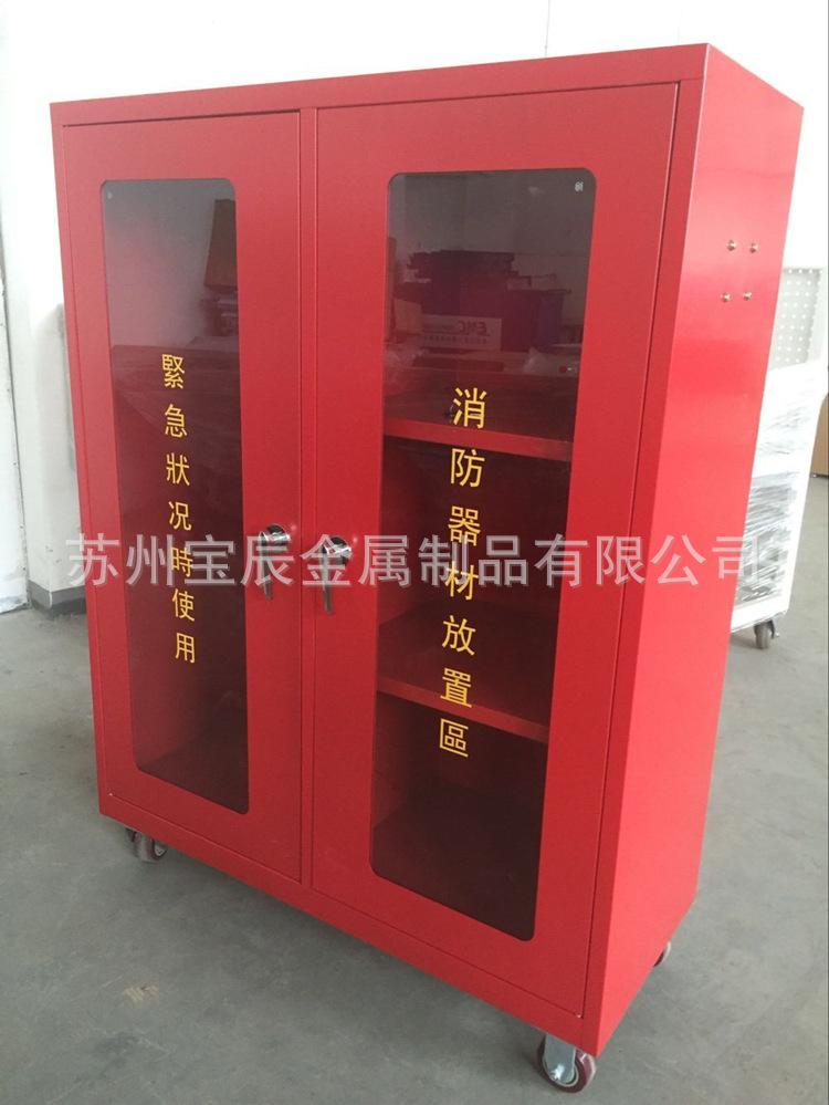 2. Portas duplas, com fechadura, palavras impressas (porta esquerda "proteção contra incêndio", porta direita "119"), prateleira embutida, moldura superior