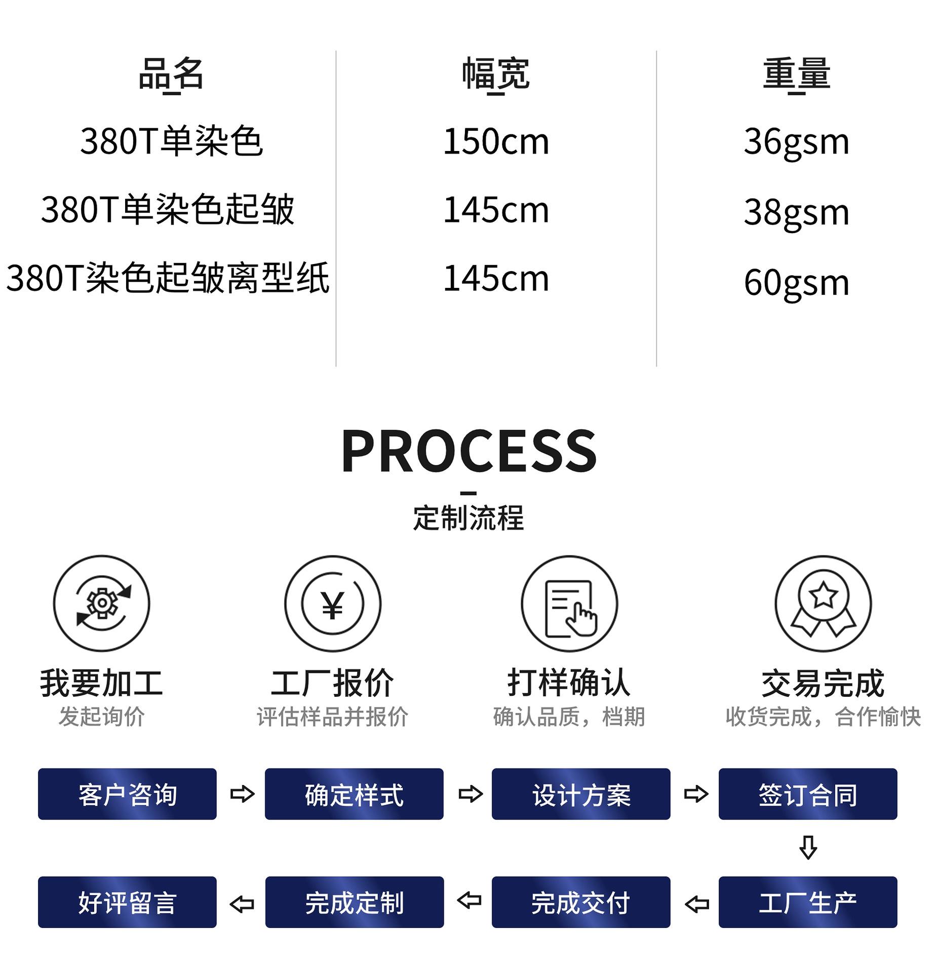 380T nylon spinning sample, 380T nylon spinning single dyeing, Nylon crepe, Nylon bronzing and release paper