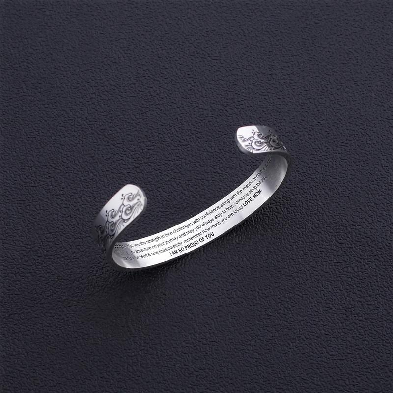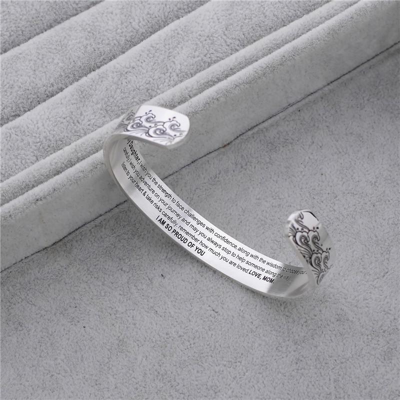 刻字:Para minha filha desejo-lhe força para enfrentar desafios com confiança junto com sabedoria para escolher suas batalhas com cuidado Desejo-lhe aventura em sua jornada e que você sempre pare para ajudar alguém ao longo do caminho Ouça seu coração e corra riscos com cuidado Lembre-se do quanto você é amado, estou muito orgulhoso de você, amor, mãe