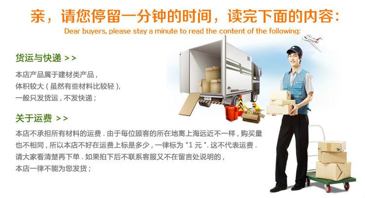 Este produto define a taxa de envio para 1 yuan, não 1 yuan para envio. Os custos de envio são calculados com base em diferentes regiões e diferentes quantidades. O frete a ser enviado para a cidade (município) é pago à vista ou à vista. Entre em contato com o atendimento ao cliente para alterar o frete. O produto é um material de construção de grande porte e precisa ser verificado em quantidade e cor. Certifique-se de entrar em contato com o atendimento ao cliente para confirmar suas necessidades antes de tirar uma foto. Não enviaremos fotos tiradas sem autorização! Pedimos desculpas pelo inconveniente causado a você! Entre em contato com o atendimento ao cliente para obter detalhes!