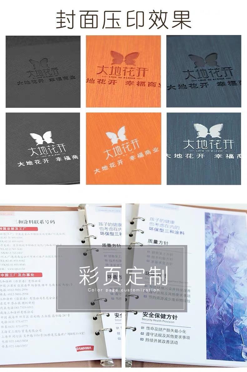 Como avaliar se é um caderno de folhas soltas: observe a interface entre o núcleo interno e a capa. Atualmente, os cadernos de folhas soltas geralmente usam uma fivela que pode ser aberta para fixar o núcleo interno. Um caderno de bolso significa que a capa e o núcleo interno podem ser feitos separadamente, usando tecnologia de costura de embrulho duplo ou de embrulho único. Os materiais dos produtos da Cangnan Wanyin são feitos de tecidos internacionalmente populares, incluindo couro genuíno, imitação de couro, couro importado que muda de cor, couro PU, couro artificial, PVC, tecido Oxford, tecido de encadernação, papel de encadernação, papel especial, papel revestido de plástico, etc. ., com design humanizado, artesanato requintado, prova gratuita e LOGOTIPO adicional do produto pode ser estampagem a quente, prata quente, alumínio galvanizado multicolorido, tela de seda, impressão offset de quatro cores, gravação a laser, placa de identificação de metal, etc .; várias formas e estilos podem ser especialmente projetados de acordo com suas necessidades. Adotamos ativamente vários materiais, diferentes processos e diferentes estilos de design e inovamos constantemente em estilos e processos de produtos para atender à imagem corporativa de alta qualidade. As páginas internas são impressas em papel matricial bege de alta qualidade e impressão offset em papel revestido duplo branco. Existem versões gerais de coluna completa, versões em inglês, versões de calendário semanal, versões de calendário e versões especiais e impressões podem ser feitas de acordo com os requisitos da empresa, com páginas adicionais de impressão em cores, LOGOTIPO e anúncios corporativos impressos nas páginas internas, papel especial, caixas de embalagem opcionais e sacos de embalagem podem ser usados para fornecer aos clientes serviços profissionais completos, como design, início de molde, seleção de material, produção e frete.