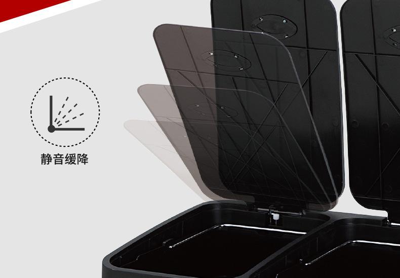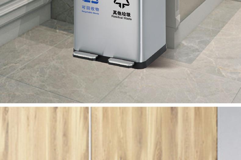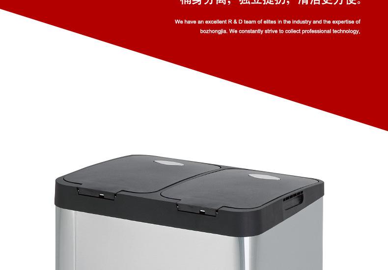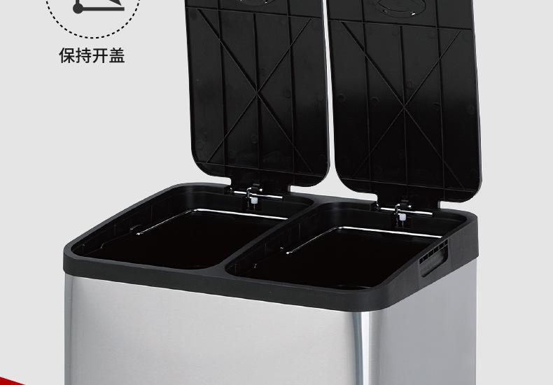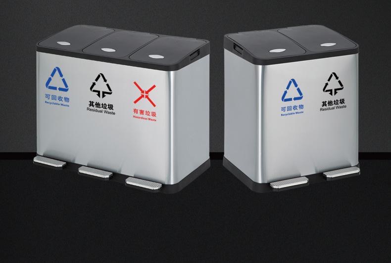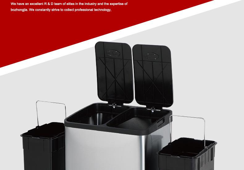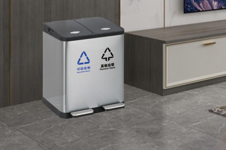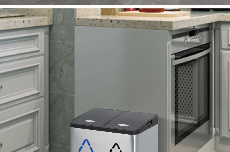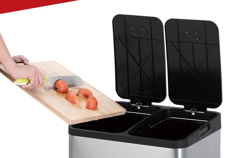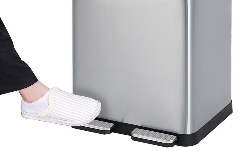Cozinha sala de estar escritório grande lata de lixo silenciosa operada por pé em aço inoxidável com classificação de barril duplo com separação seca e úmida