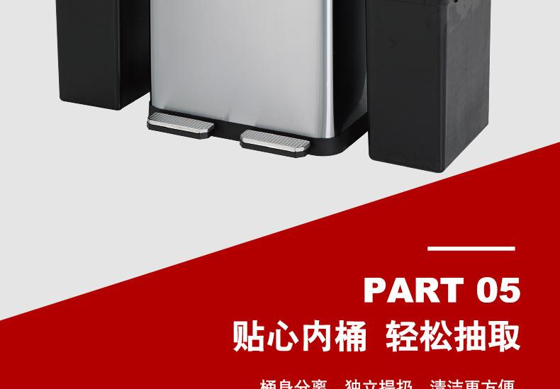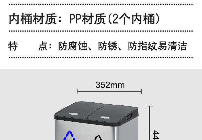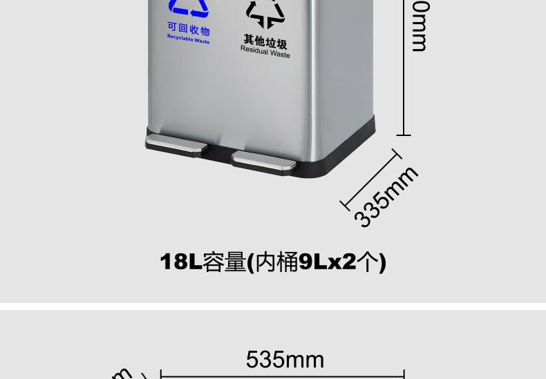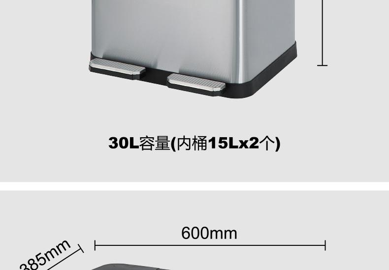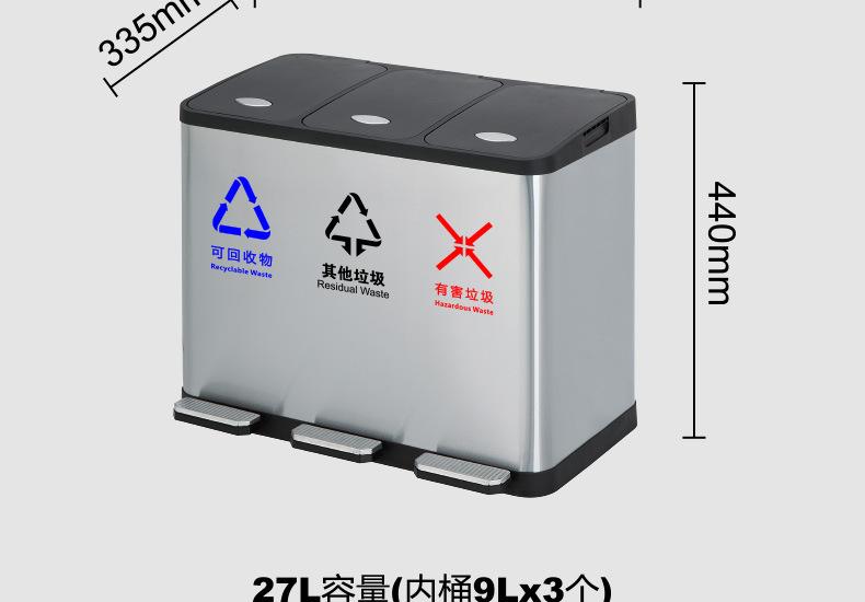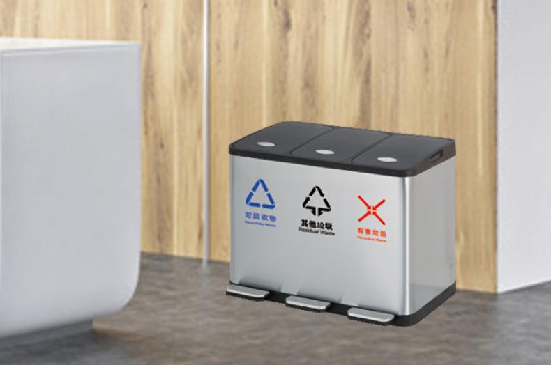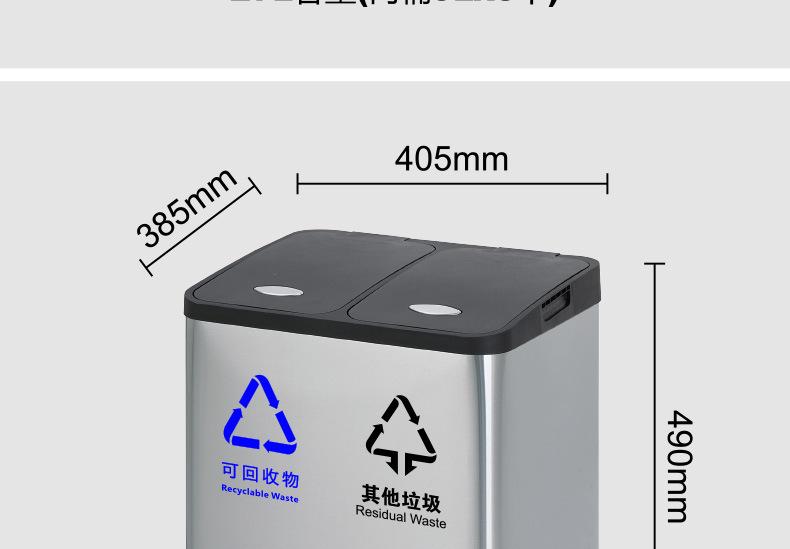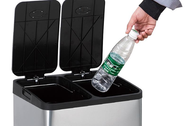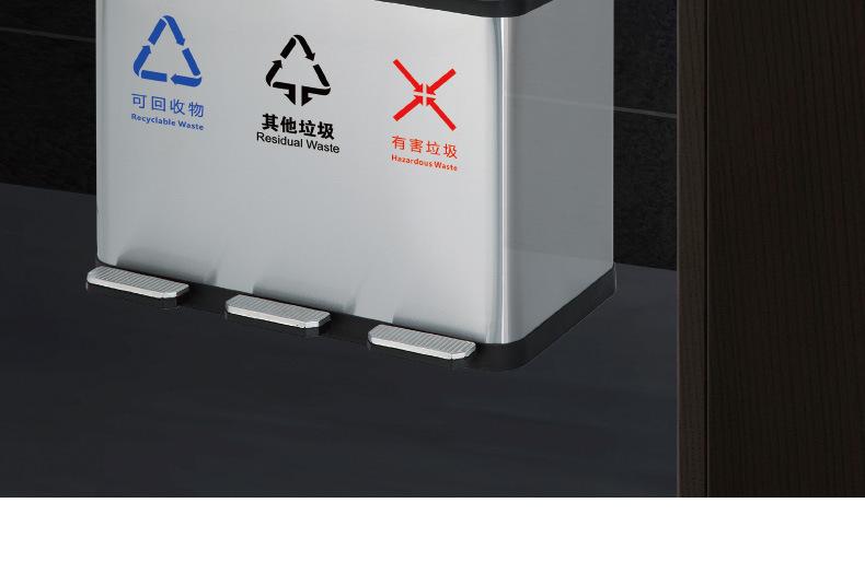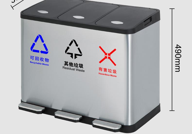 Cozinha sala de estar escritório grande lata de lixo silenciosa operada por pé em aço inoxidável com classificação de barril duplo com separação seca e úmida