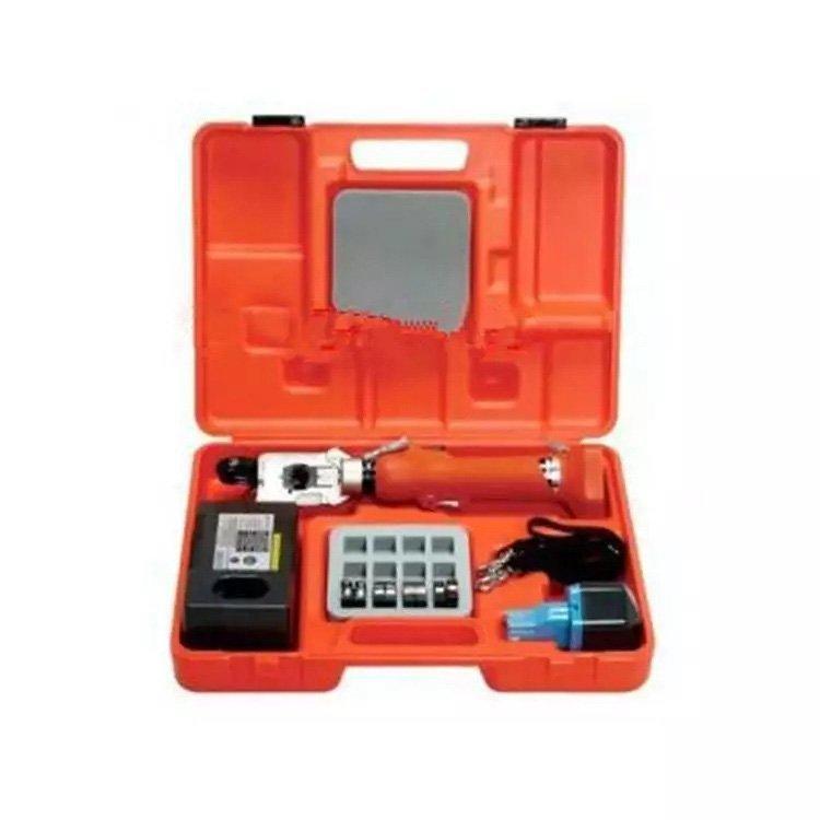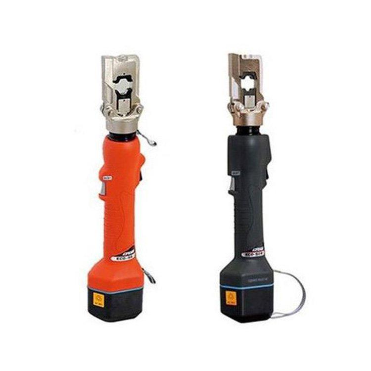 Características da mini máquina de crimpagem hidráulica recarregável ECO-50: A cabeça de crimpagem é do tipo gancho, o que é conveniente para carregar e descarregar o molde. A cabeça pode girar 180 graus para se adaptar a diferentes ângulos. O sistema de crimpagem é equipado com uma válvula de transbordamento, que libera pressão automaticamente após a saída padrão. Uma única carga pode cravar terminais de 150 mm2 60 vezes. A ferramenta está equipada com uma alça de ombro, que é particularmente adequada para operações em grandes altitudes. Especificações da mini máquina de crimpagem hidráulica recarregável ECO-50: Curso: 15mm Potência: 14,4VDC Crimpagem de 6 cantos aplicável: Luva de cobre máxima de 150mm2 Saída: 52kN Tempos de crimpagem: 67 vezes tamanho do terminal de cobre 150mm2 397(L)x79(H)x70 (W)mm Peso 2,3kg (3,1kg incluindo bateria)