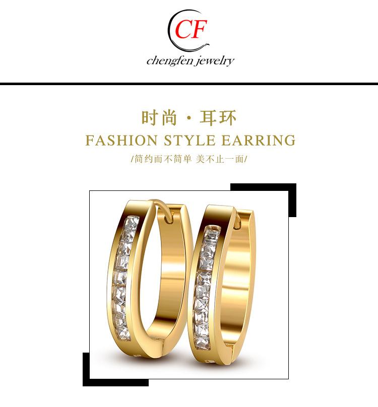 Compre Brincos de aço inoxidável banhados a ouro simples da moda, fivela de orelha de strass de aço de titânio, brincos de orelha populares europeus e americanos no atacado no Joom.pro