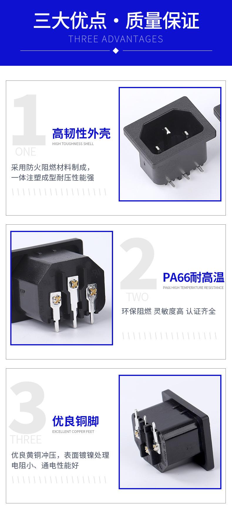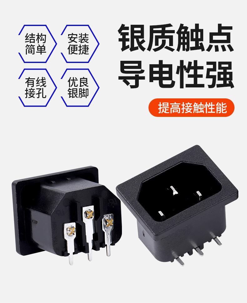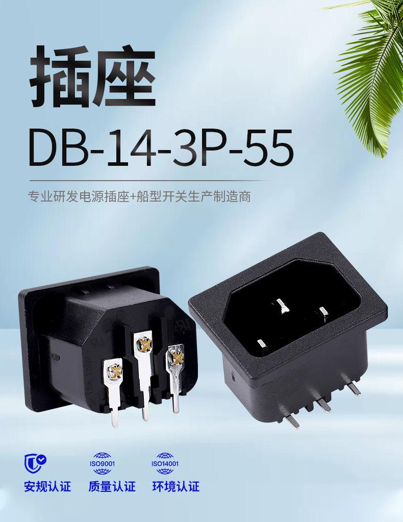 DB-14-2CF Panela de arroz Smart TV Fonte de alimentação Tomada CA em forma de pino preto Tomada de alimentação PA66 de três núcleos