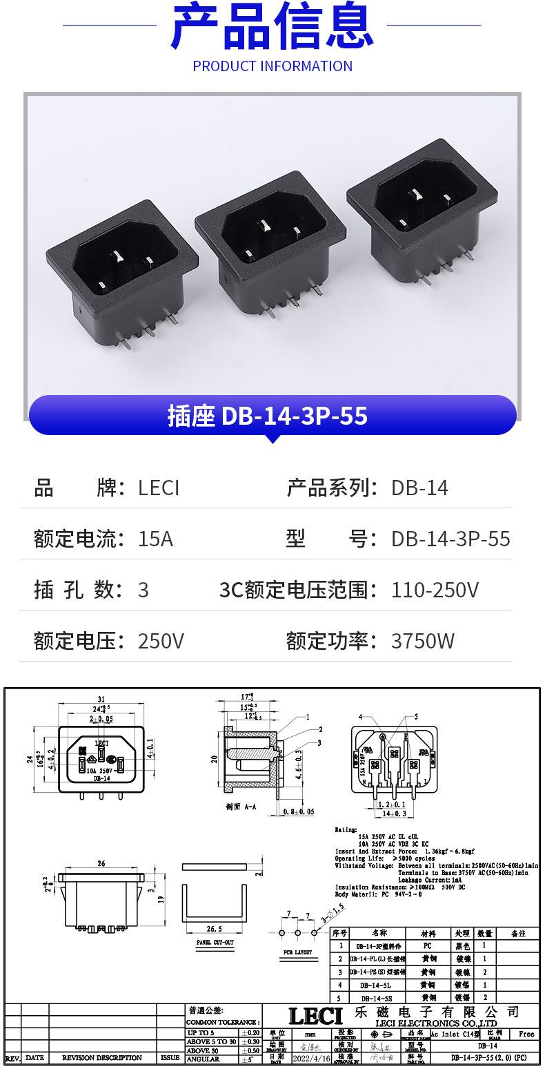Spot DB-14-1F adaptador AC soquete de pino 49,5 * 22,5 tomada de alimentação de certificação de segurança masculina