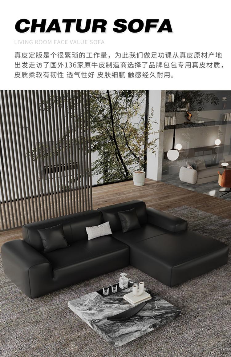 Compre Sofá Minimalista Italiano de Couro de Vaca Preto para Sala de Estar, Sofá de Arte de Couro de Vaca de Primeira Camada de Alta Qualidade Preto de Fileira Reta no atacado no Joom.pro