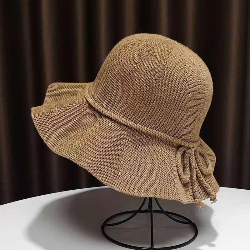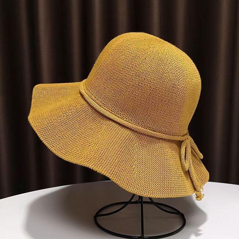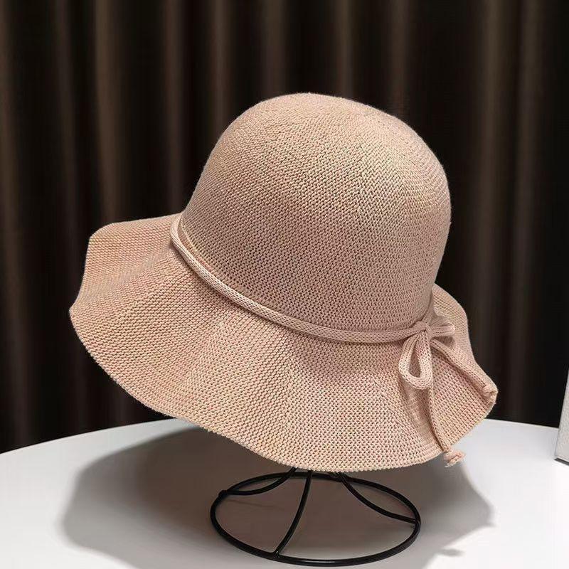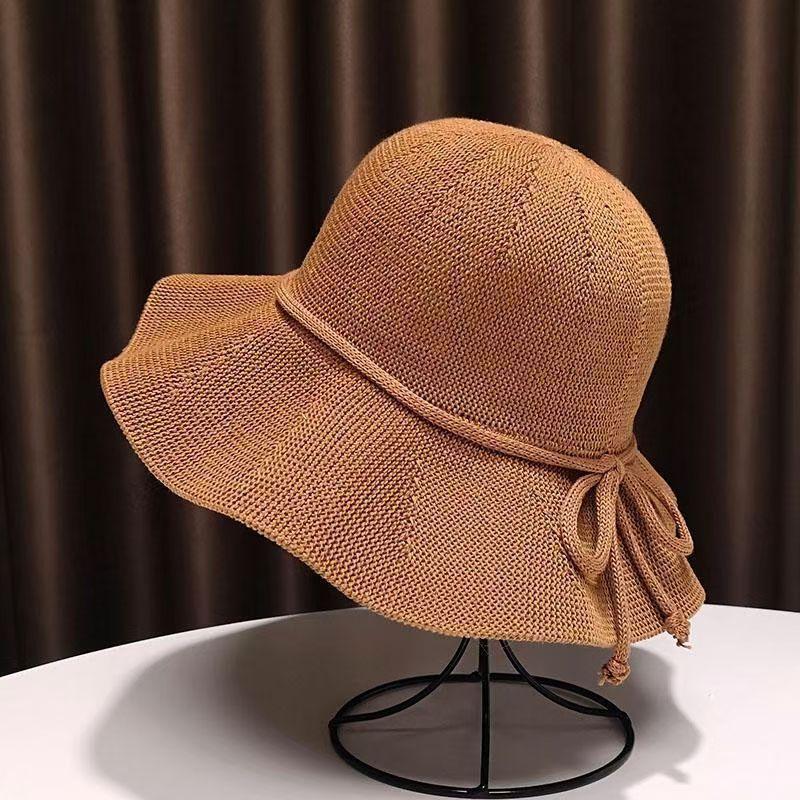 Chapéu de pescador com arco de verão feminino anti-ultravioleta chapéu de sol rosto pequeno cor sólida dobrável chapéu de aba larga ao ar livre