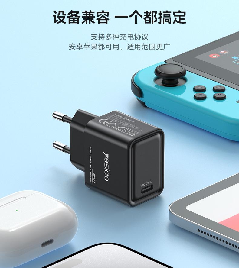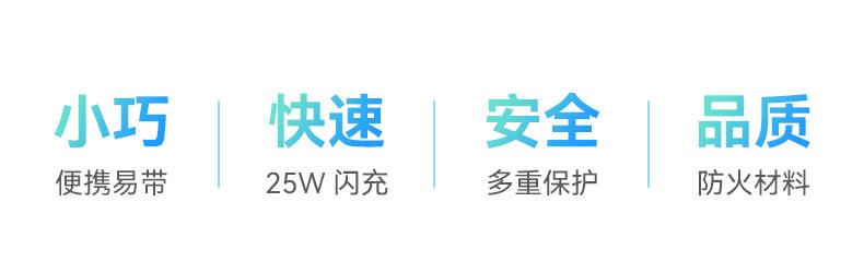 1. Compatível com protocolo PPS 1. Saída de potência forte PD25W, tanto telefones celulares quanto tablets podem ser carregados rapidamente;