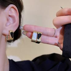 Pendientes de plata 925 con forma de corazón blanco y negro de alta calidad para mujer, con temperamento de nicho, estilo celebridad, nuevos pendientes 2023
