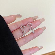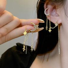 Pendientes de borlas de estrella y luna de diseño coreano para mujer, pendientes con clip de hueso de oreja integrado con temperamento, pendientes ligeros de personalidad de lujo al por mayor