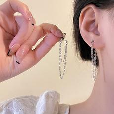 Pendientes de borla de cadena de estilo frío con aguja de plata 925 para mujer, pendientes largos con personalidad de alta gama, pendientes de moda de estilo coreano.
