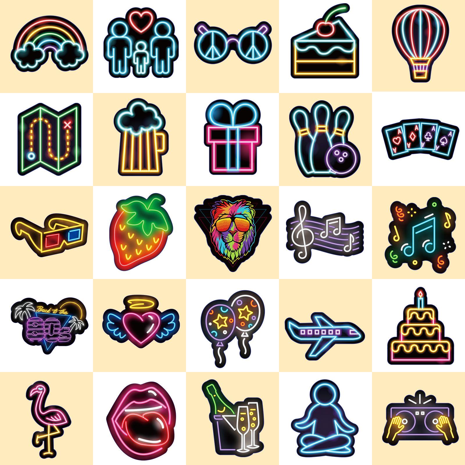 50 piezas de pegatinas de neón nocturnas transfronterizas personalizadas de dibujos animados para cuaderno, patineta, fluorescentes, de neón navideñas