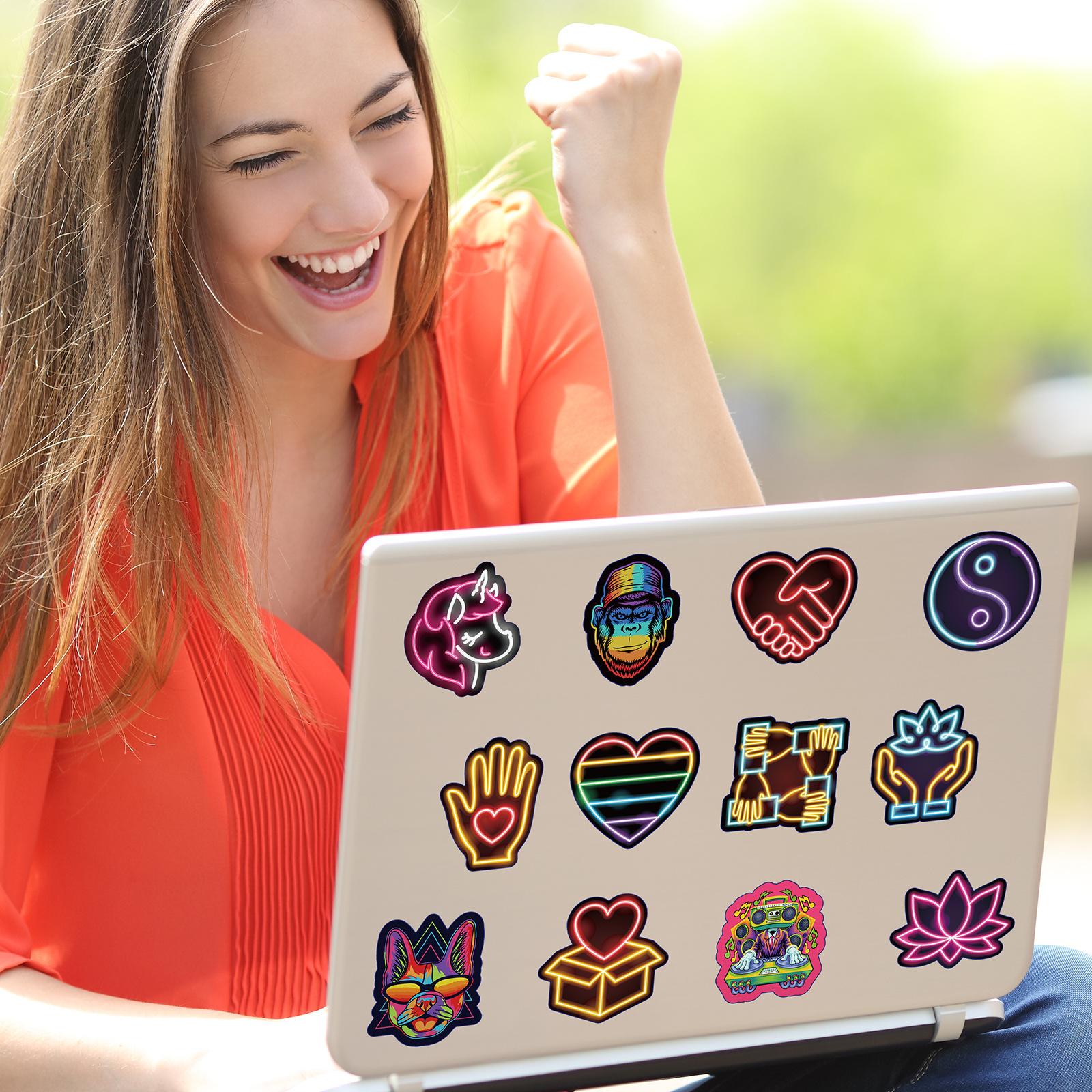 50 neón nuevos productos personalizado coche de dibujos animados computadora patineta equipaje Amazon pegatinas de grafiti shein