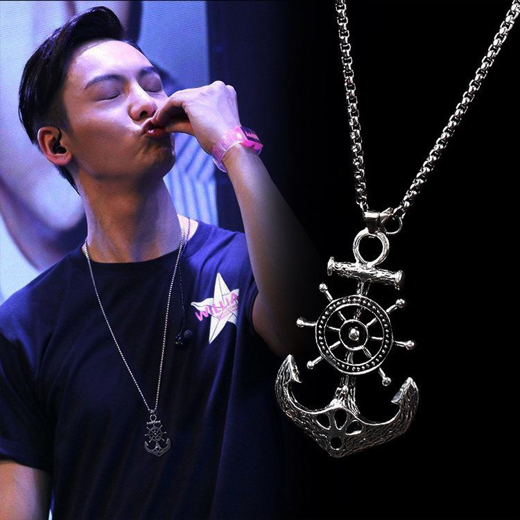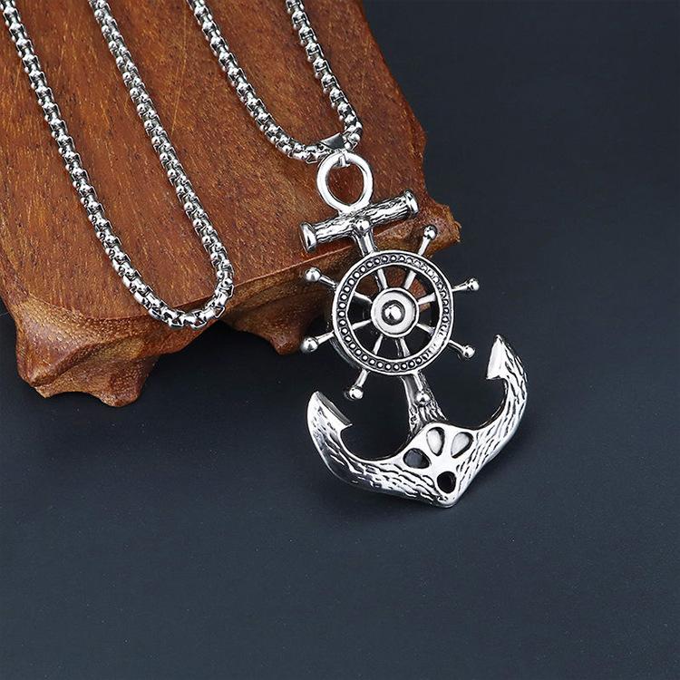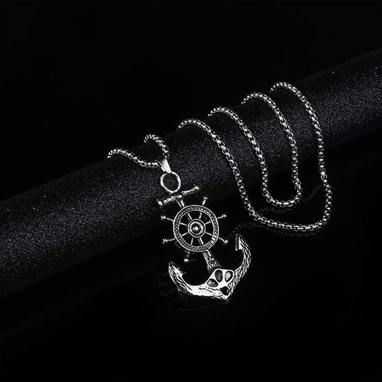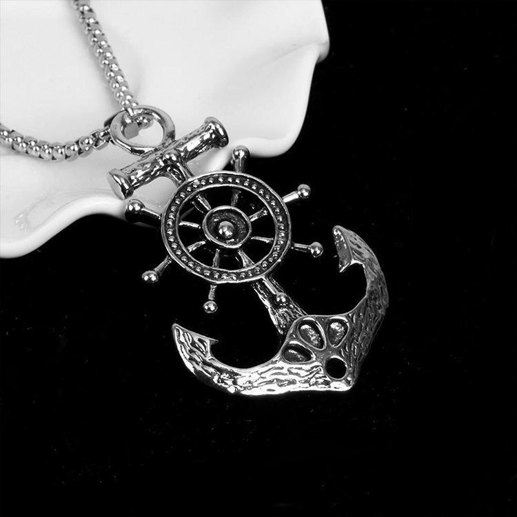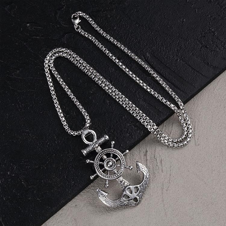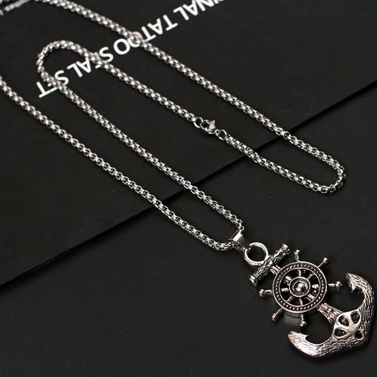 Europeu e americano grande pirata âncora colar masculino personalidade punk na moda masculino titânio aço pingente dominador retro camisola corrente longa