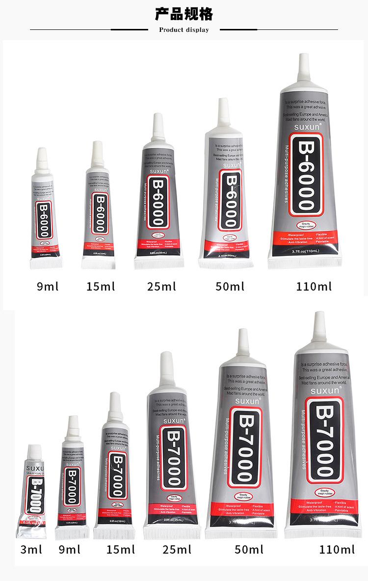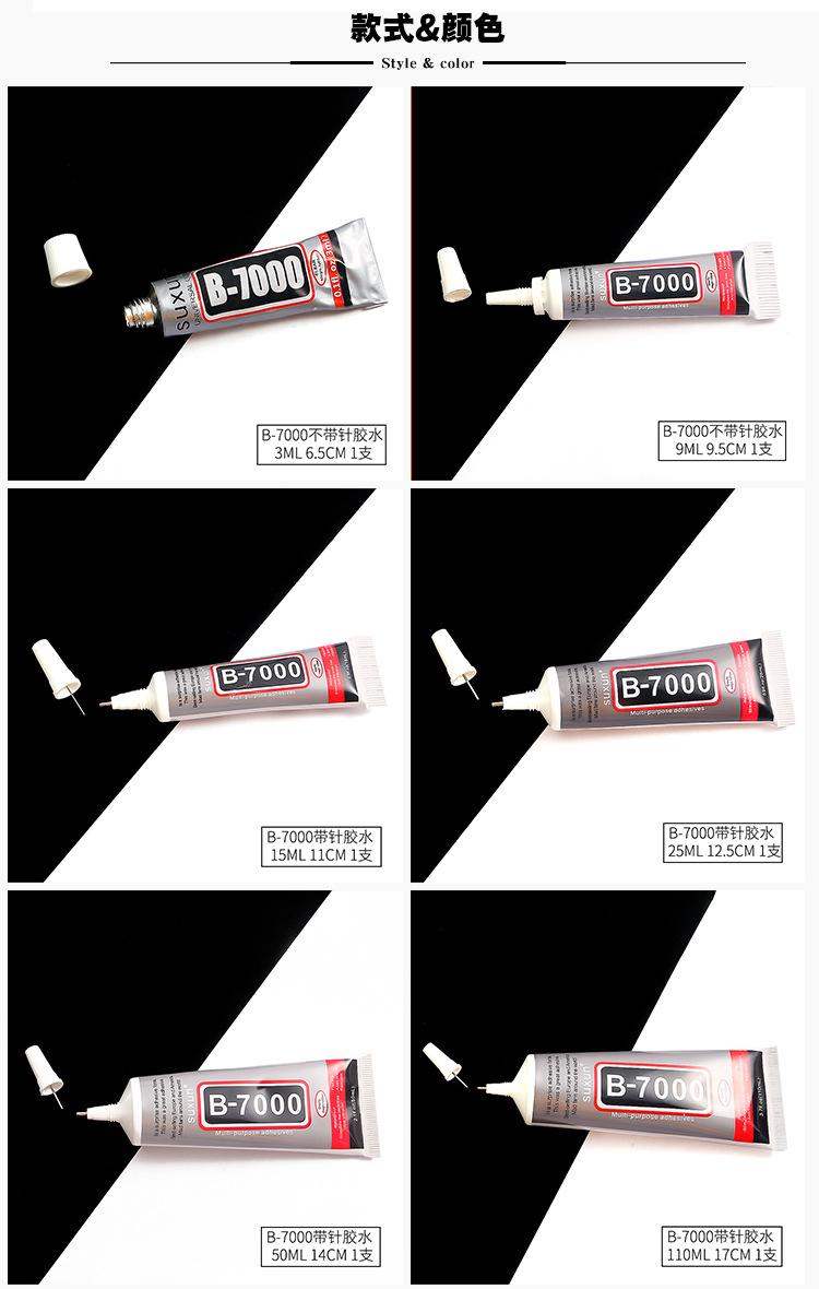 B7000: Adequado para colar metal, plástico, borracha, relógios, têxteis, strass, telas de telefones celulares, madeira, pedra, pinturas decorativas, etc.