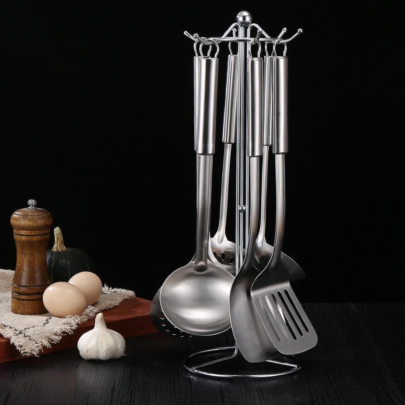 Compre Espátula de aço inoxidável doméstico stir-fry colher colher de sopa Colander pá de cozinha conjunto de alimentos alça longa no atacado no Joom.pro