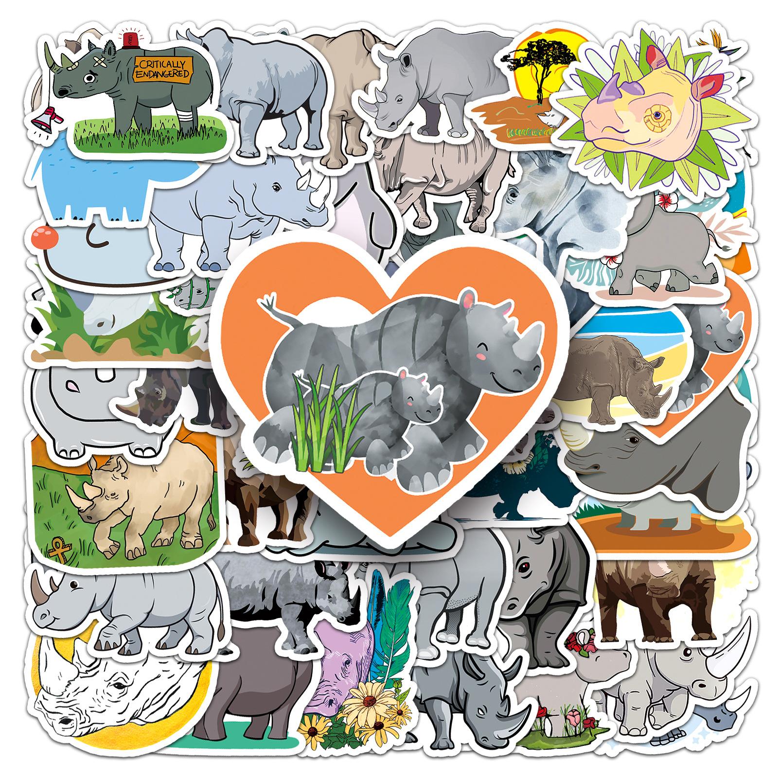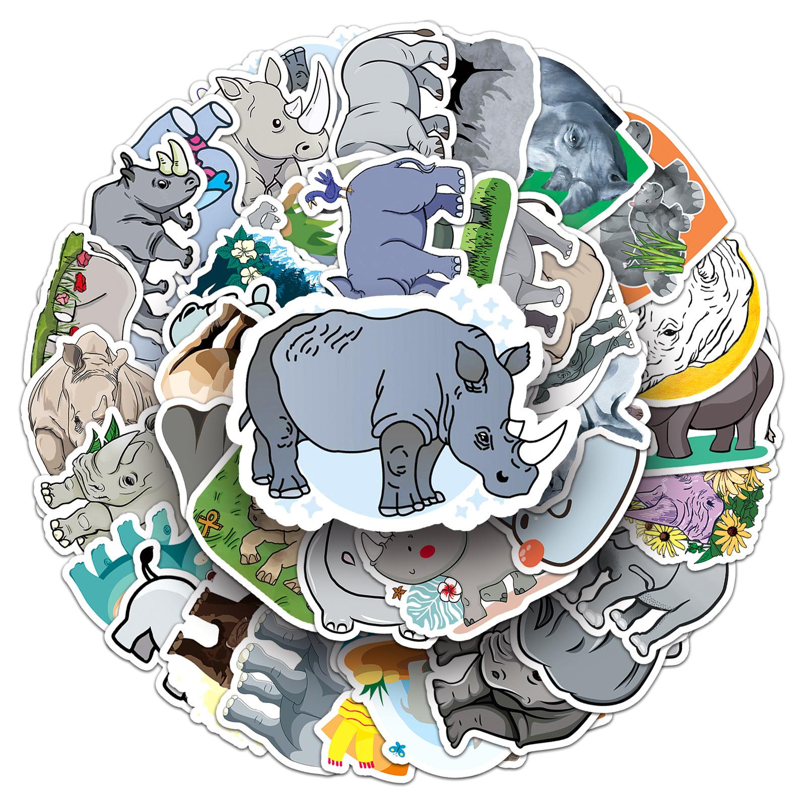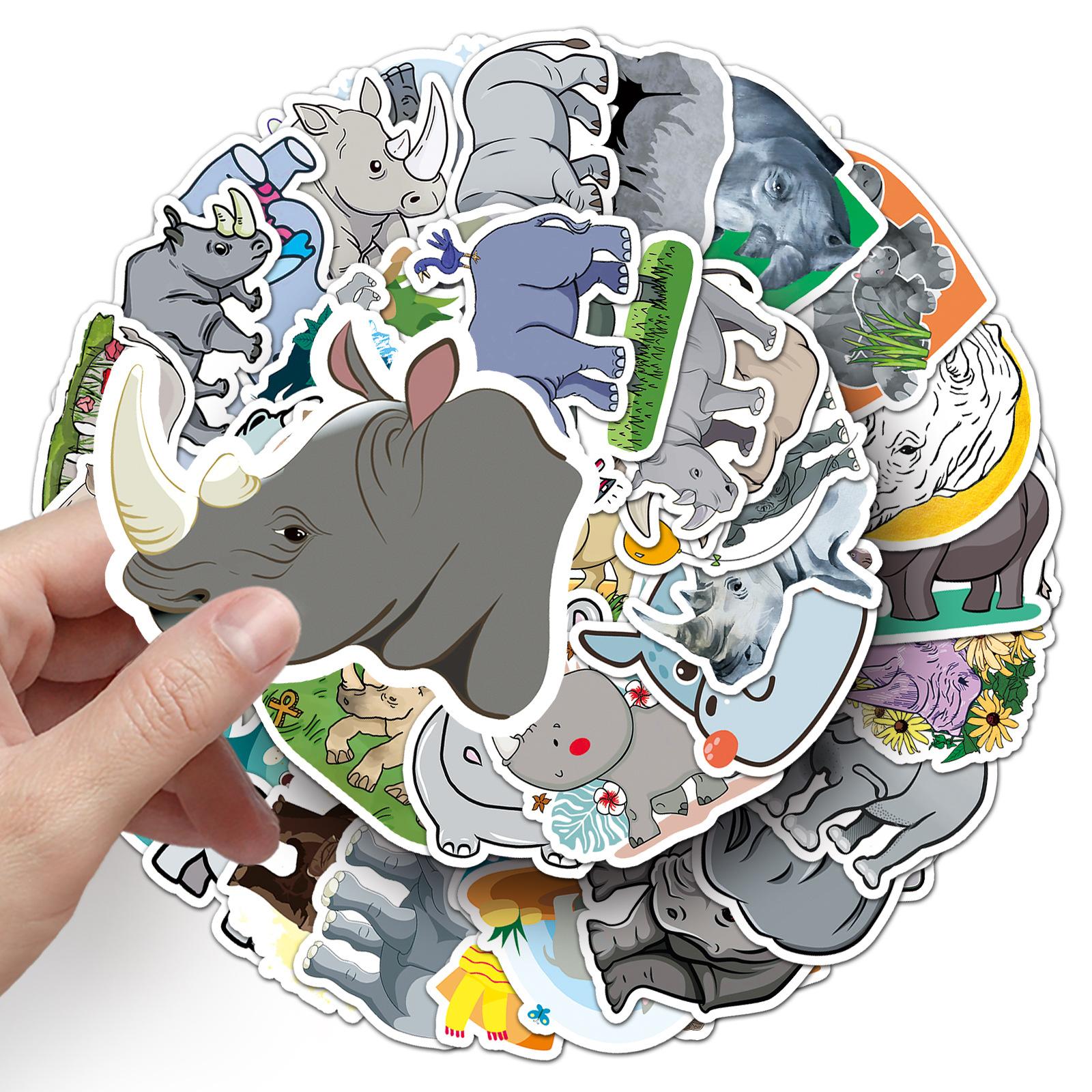 Compre 50 peças de grafite de rinoceronte personalizado com desenho animado de animal transfronteiriço para crianças, adesivos criativos para bagagem de skate à prova d'água no atacado no Joom.pro
