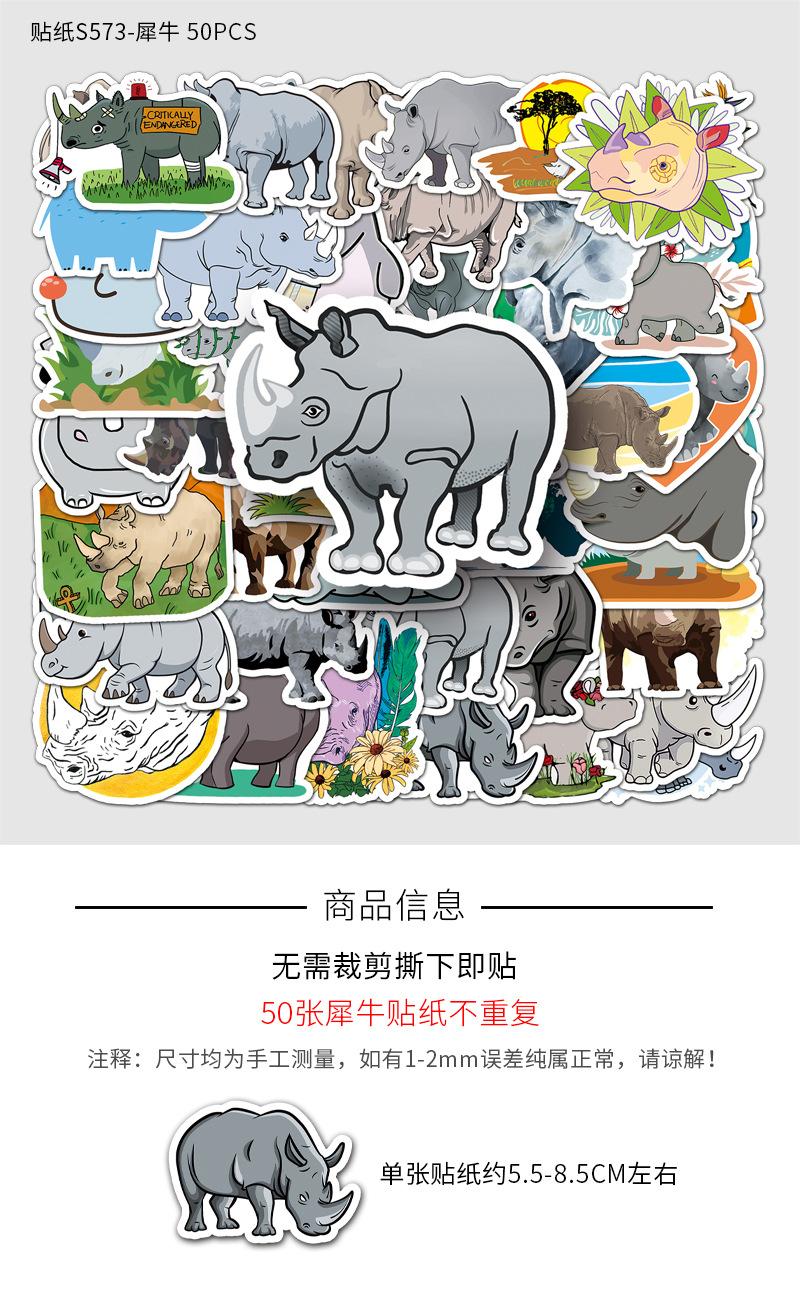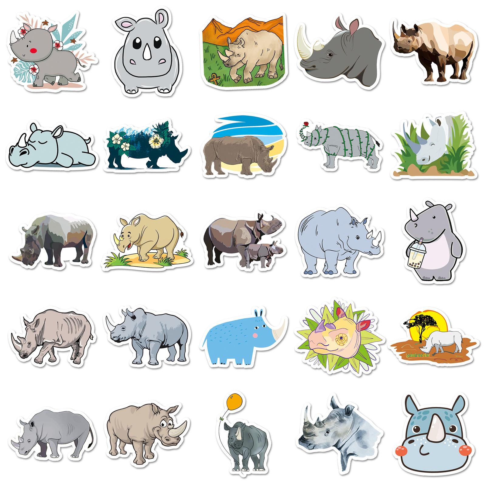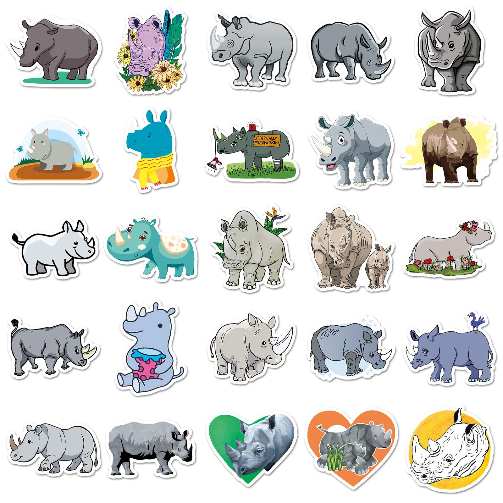 Compre 50 peças de grafite de rinoceronte personalizado com desenho animado de animal transfronteiriço para crianças, adesivos criativos para bagagem de skate à prova d'água no atacado no Joom.pro