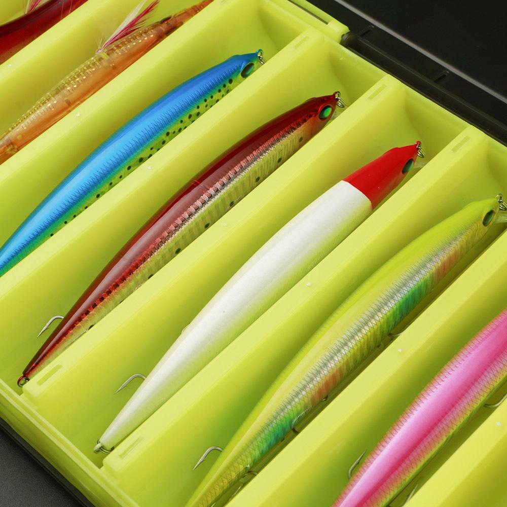 Caixa de isca caixa de armazenamento dupla face comprimento 20cm/27,5cm fivela em forma de V caixa de ferramentas de camada dupla acessórios de equipamento de pesca