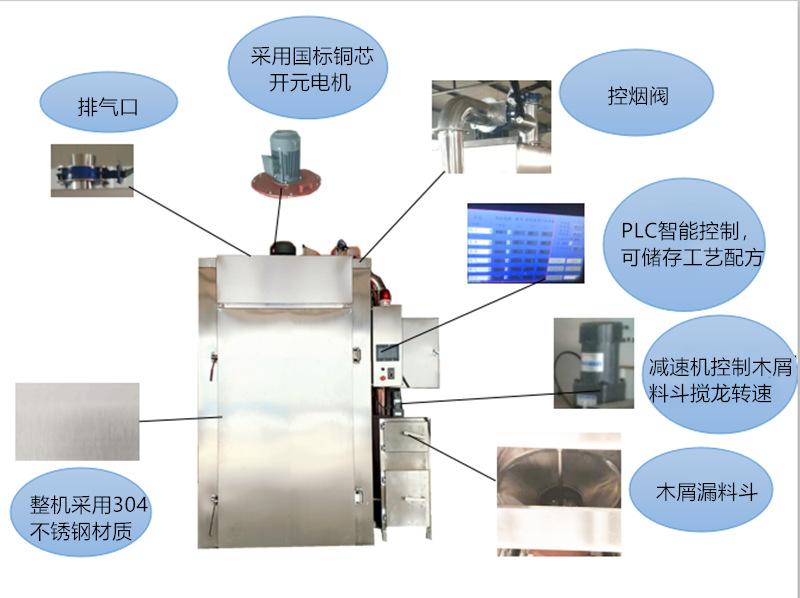 3.Economia de energia,A máquina principal é feita de aço inoxidável, que é limpo, higiênico e mais ecologicamente correto. Substitui completamente o método tradicional de fornalha de defumação, economiza trabalho dos trabalhadores e melhora a eficiência do trabalho.