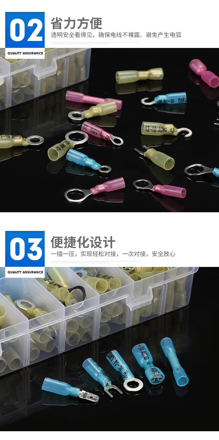 O conjunto de terminais termorretráteis de 250 unidades é embalado em uma caixa de componentes transparentes PP ecologicamente correta. Contém série RV, série SV, série FDFD, série MDD, série BHT e outros terminais termorretráteis comumente usados. Adequado para manutenção elétrica, conveniente e rápido. Qualidade estável e confiável, embalagem requintada e de alta qualidade, preço acessível. Muito popular no mercado!