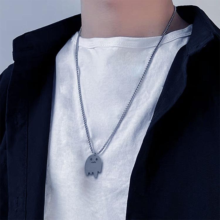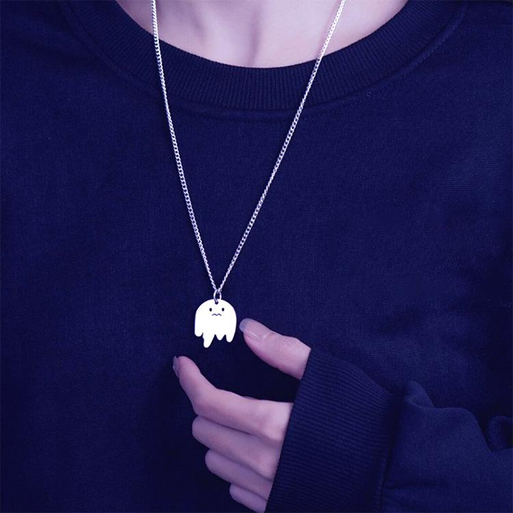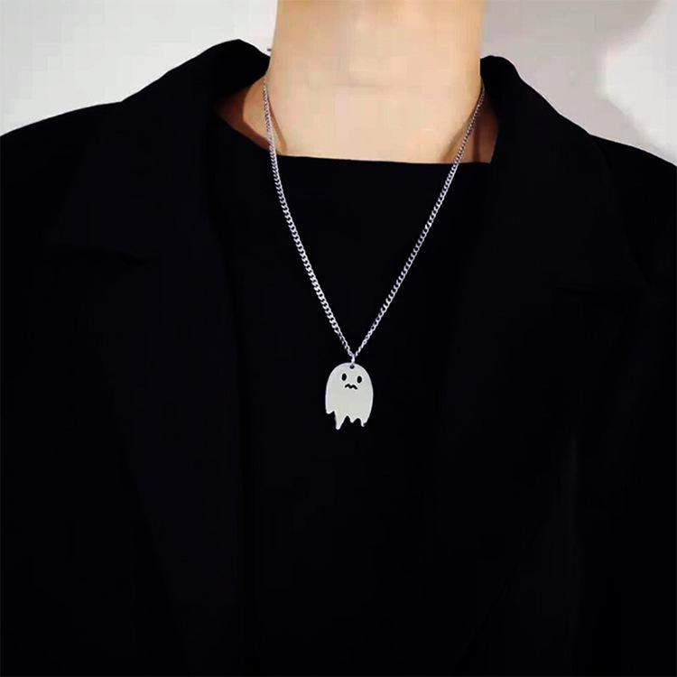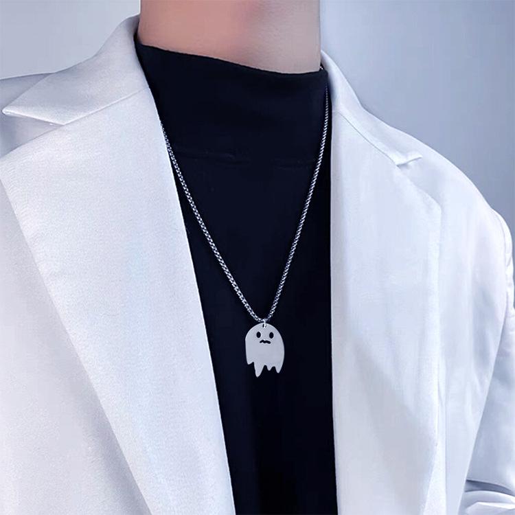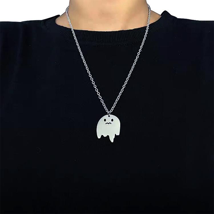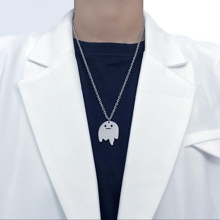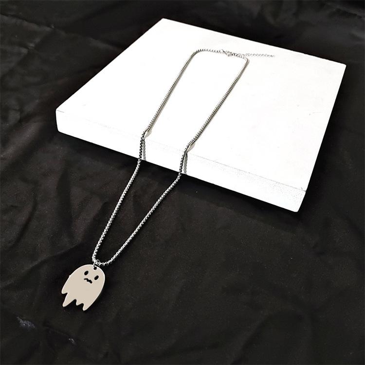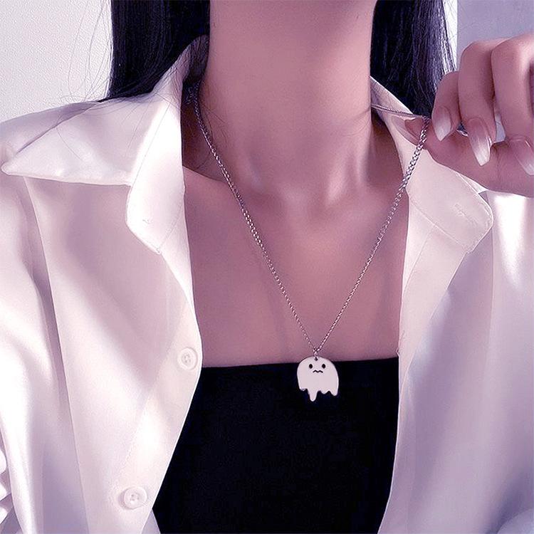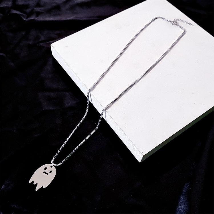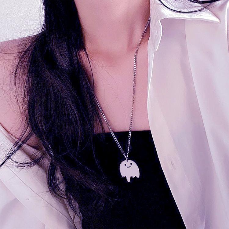 Simples colar fantasma pingente jóias bonito design de aço titânio nicho hip-hop rua camisola clavícula corrente