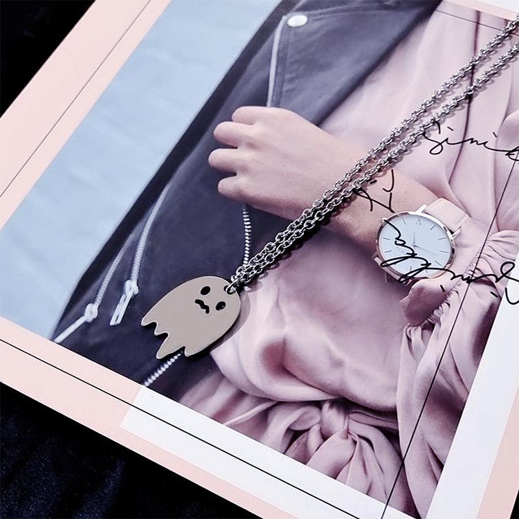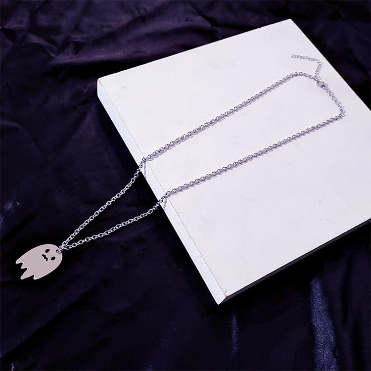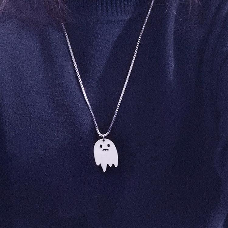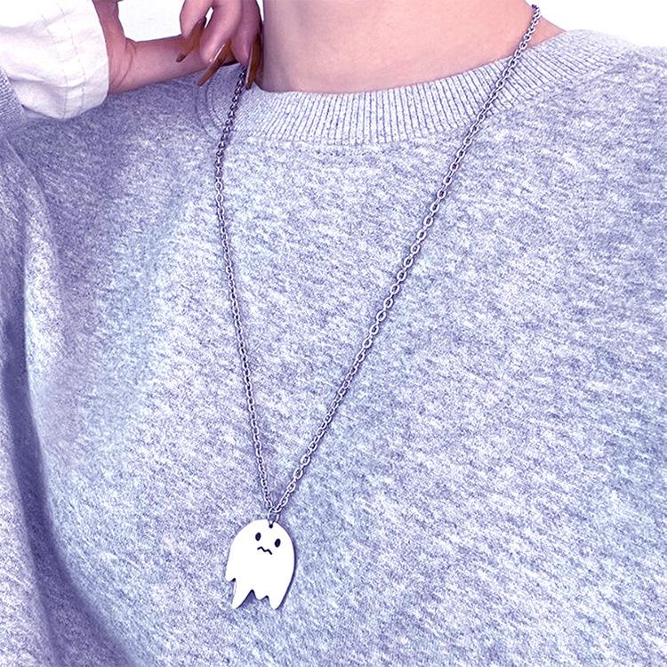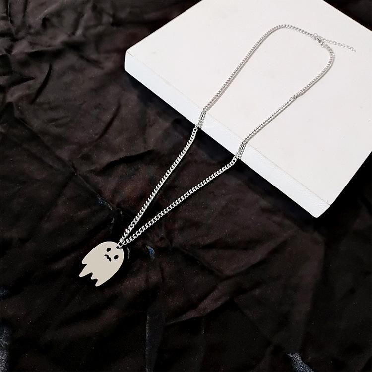 Colar de aço titânio ghost little ghost, colar funcional punk quente para meninas, colar simples, doce e legal