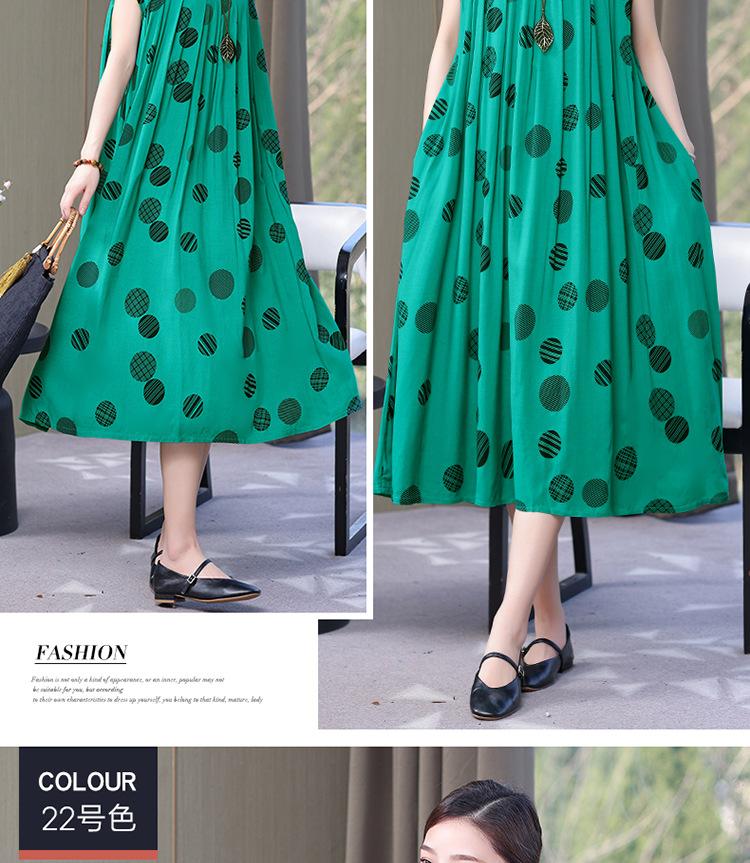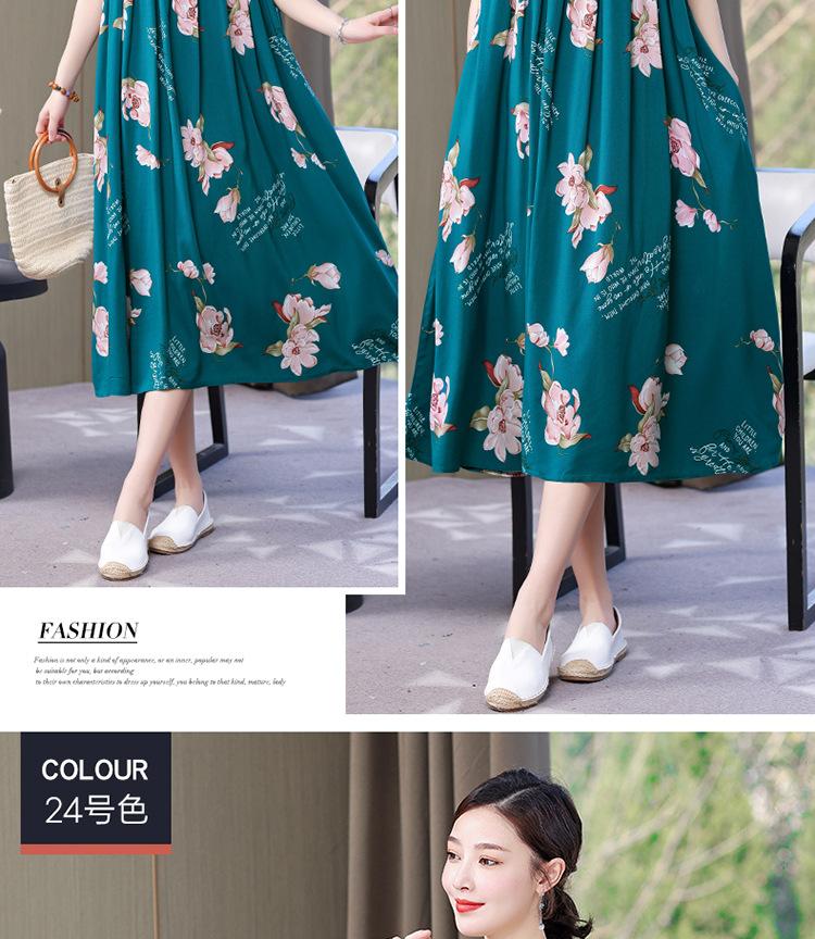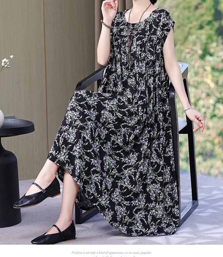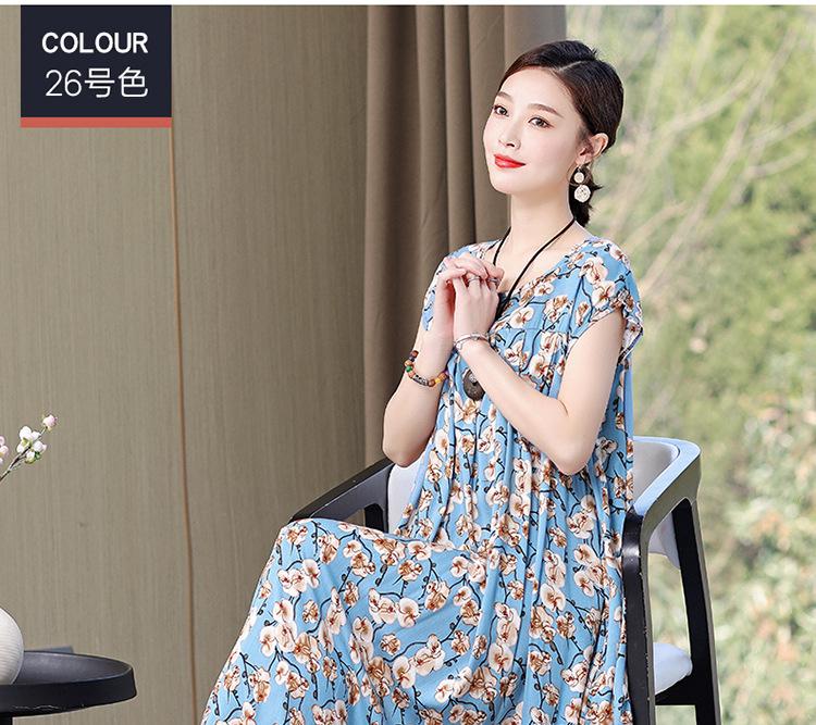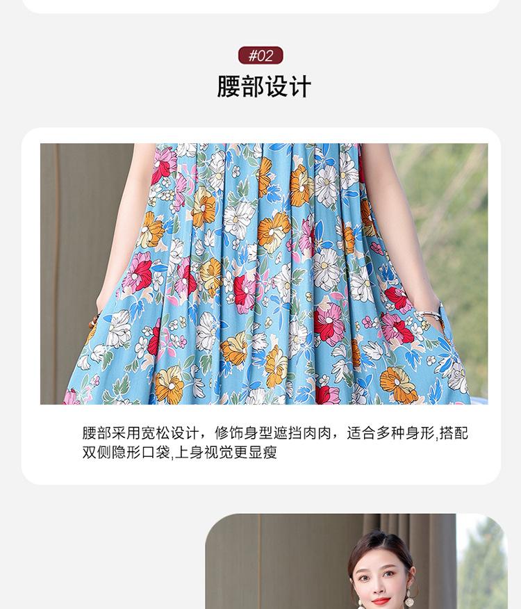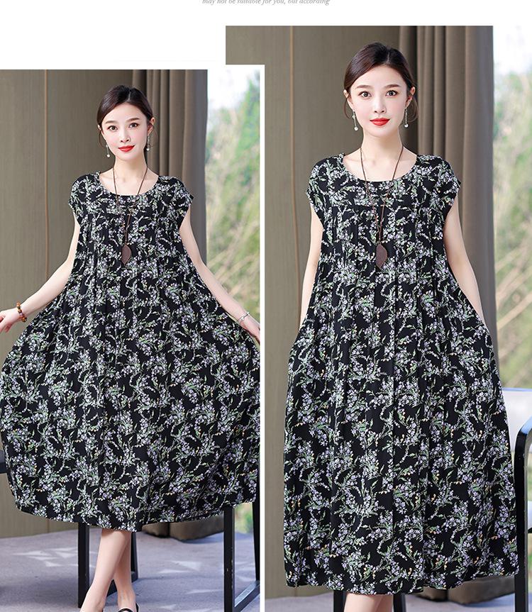 Vestido de seda de algodón de alta gama nuevo de 2023, prenda exterior de verano de moda para madres de mediana edad, falda larga con estampado de bolsillo para lucir esbelta.