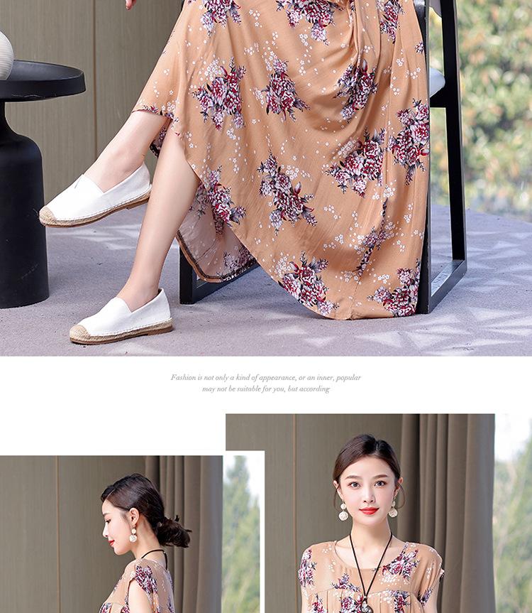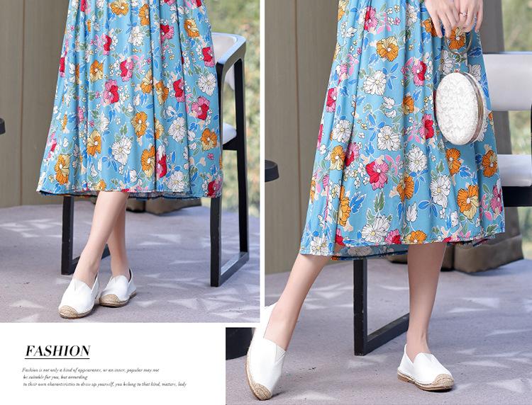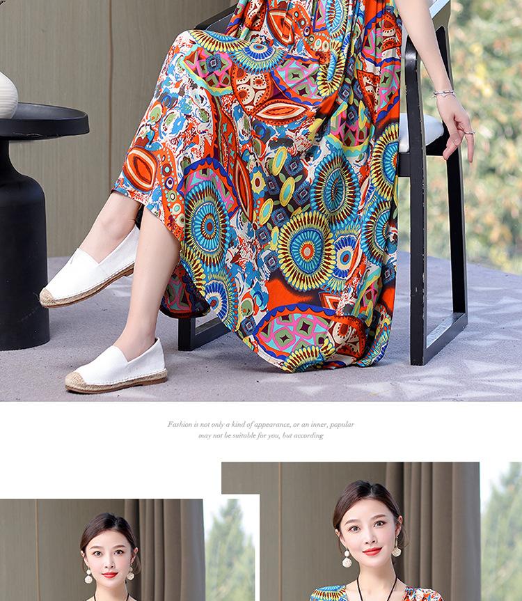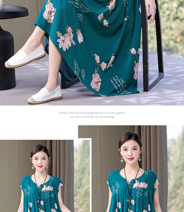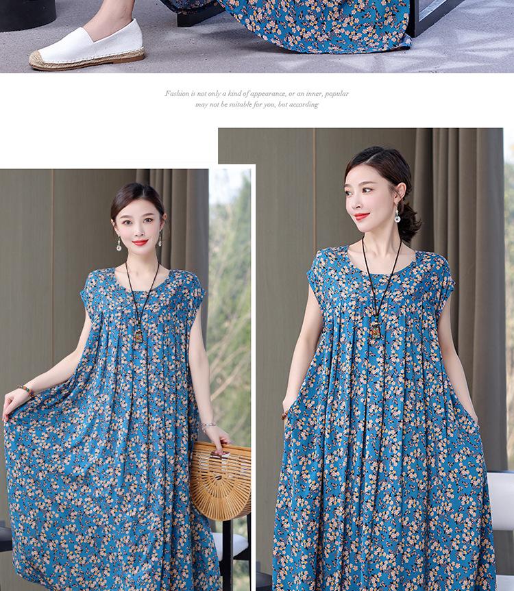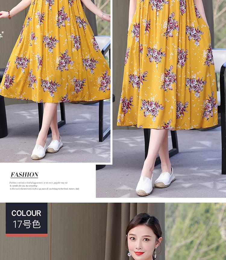 Vestido de seda de algodón de alta gama nuevo de 2023, prenda exterior de verano de moda para madres de mediana edad, falda larga con estampado de bolsillo para lucir esbelta.