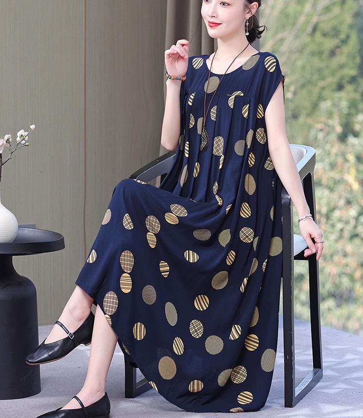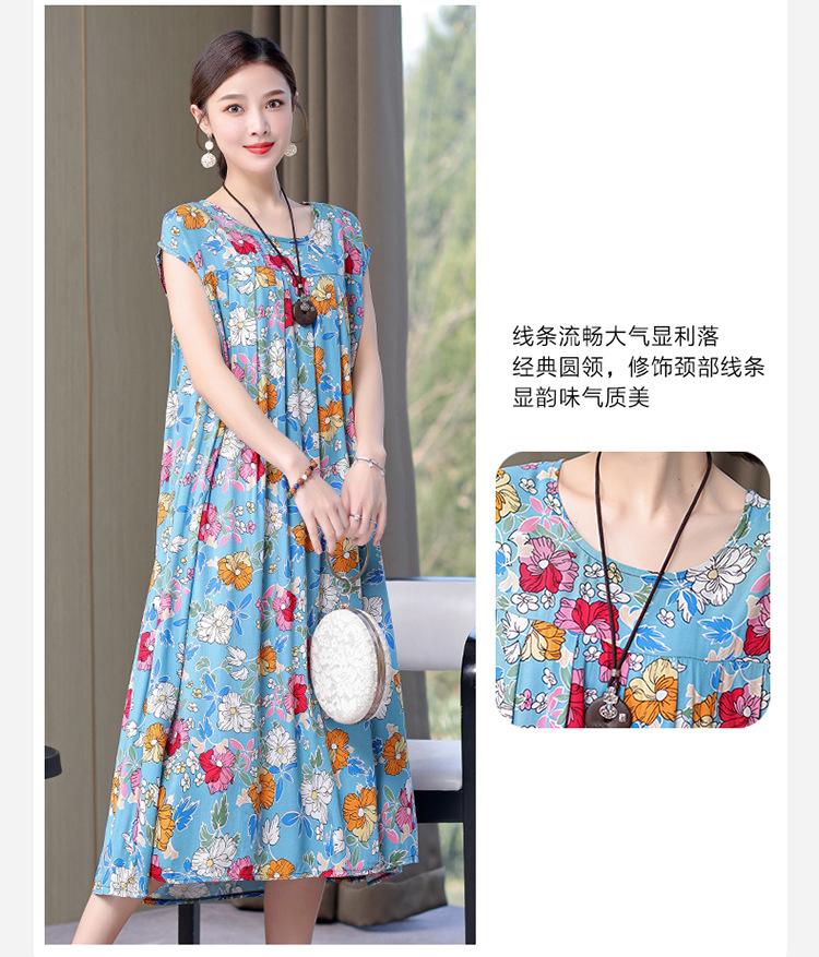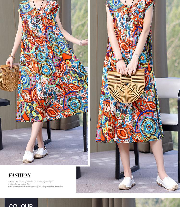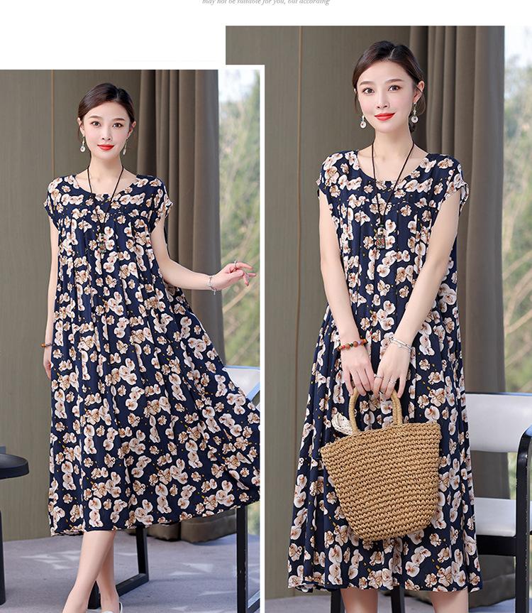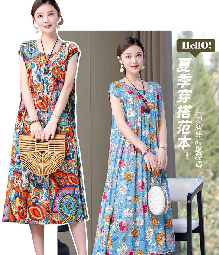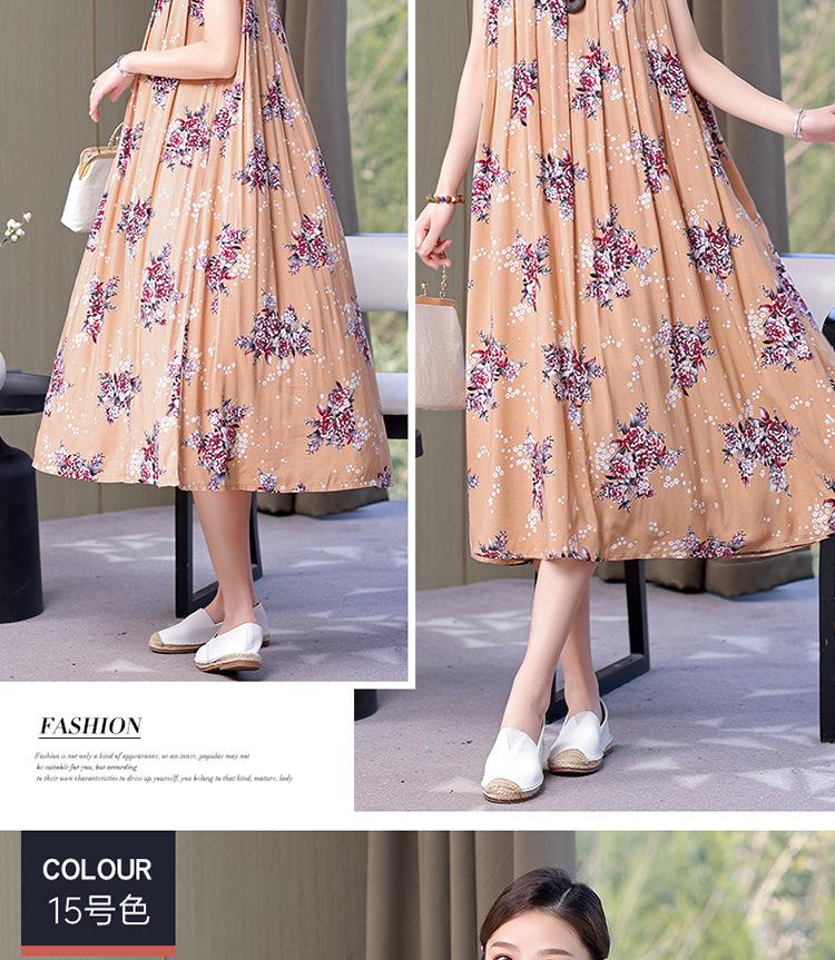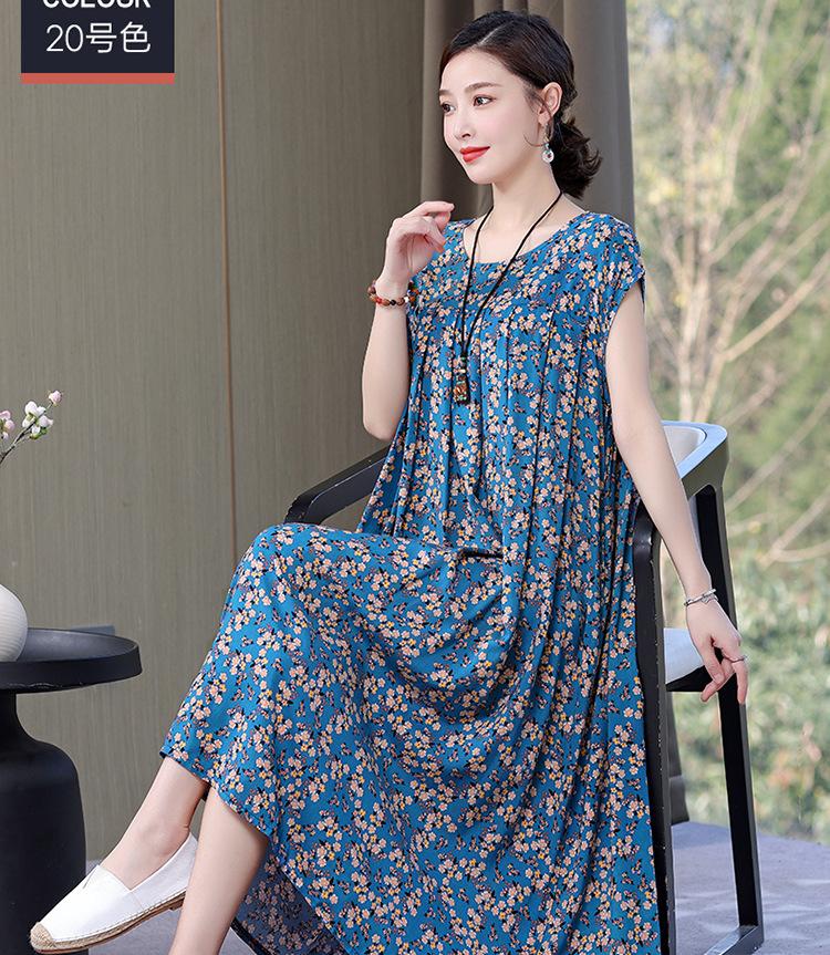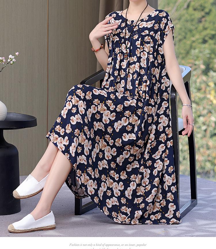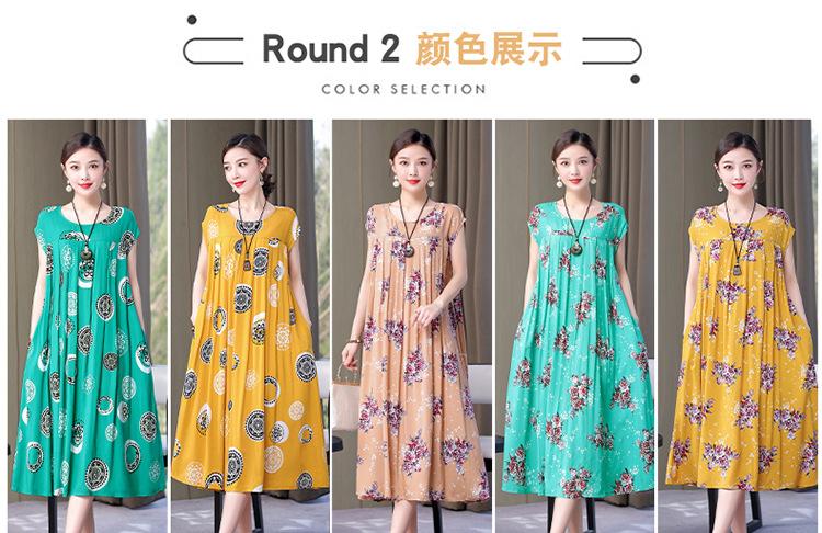 Vestido de seda de algodón de moda de nuevo estilo 2023 para madres de mediana edad, falda larga de verano de talla grande para mujer