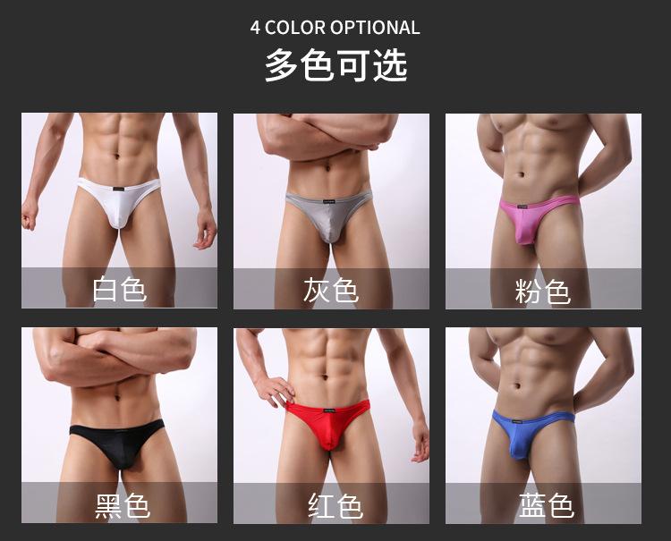 Nova roupa interior masculina fina cor sólida náilon cintura baixa sexy cuecas separação bala cross-border roupa interior masculina de tamanho grande |