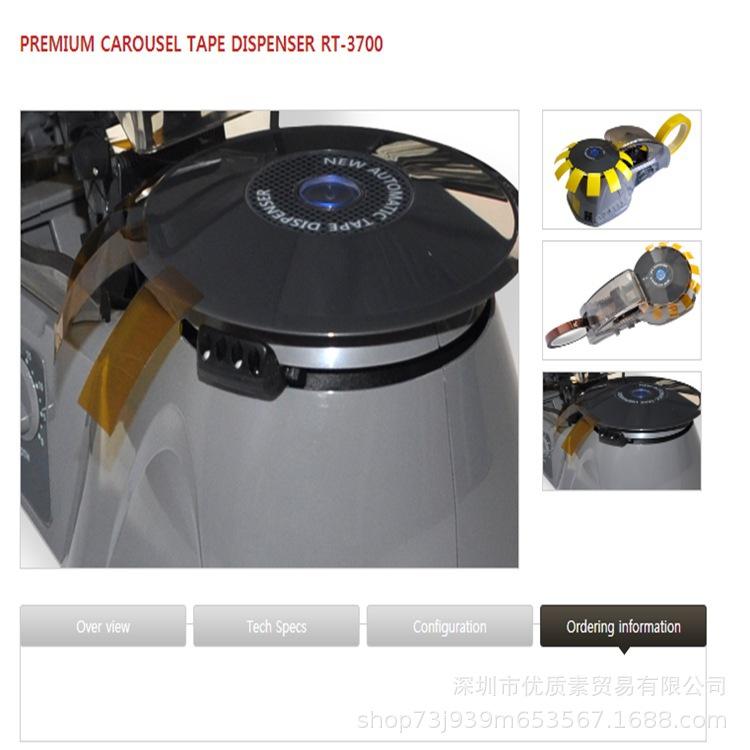 RT-3700 é um dispensador de fita tipo carrossel, e o ponto mais favorável do tipo carrossel é fazer com que vários trabalhadores possam usá-lo ao mesmo tempo. O sensor detecta a ausência quando a fita é retirada, então o carrossel girará para cortar novas fitas imediatamente. O RT-3700 é do tipo sensor e você pode ajustar a localização do sensor ao longo do carrossel. Além disso, você pode ajustar o número de fitas com localização do sensor
