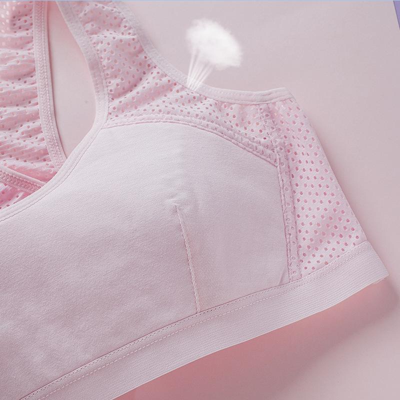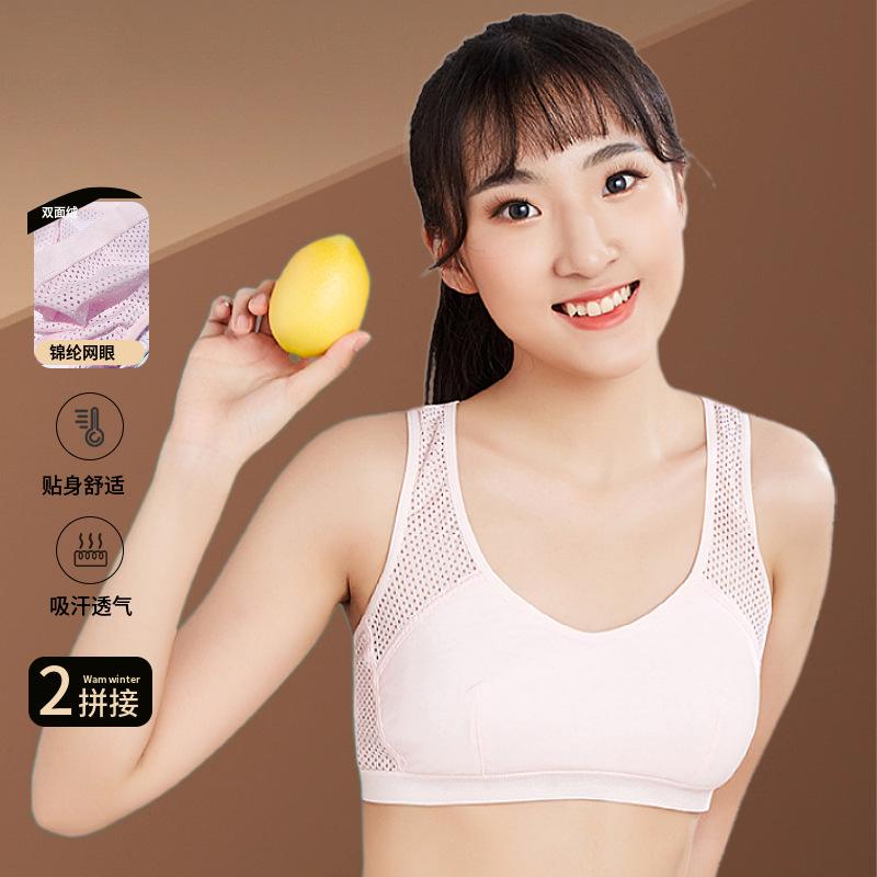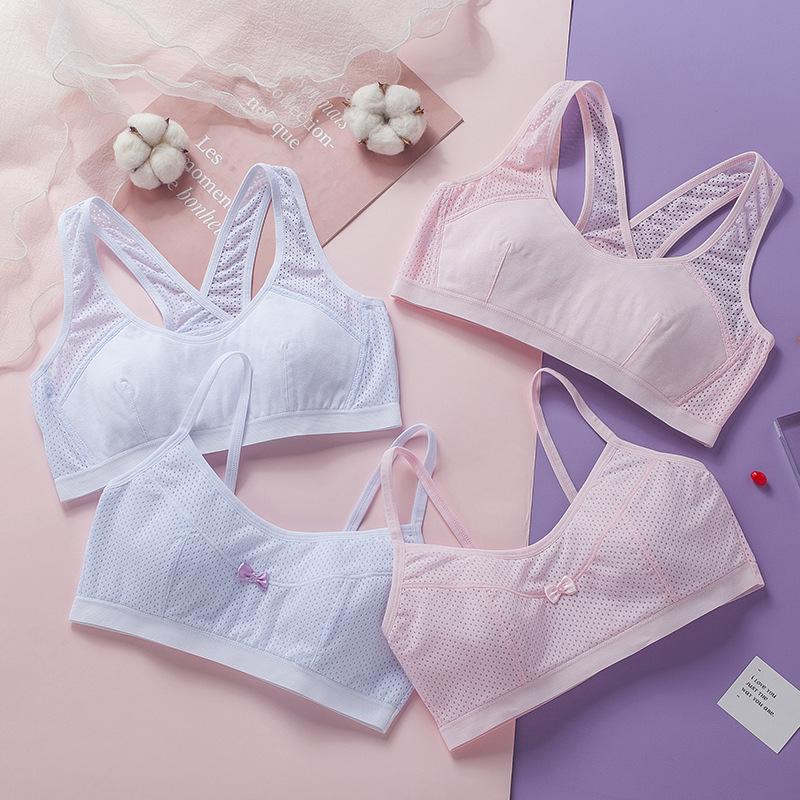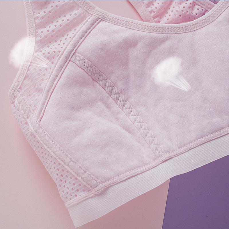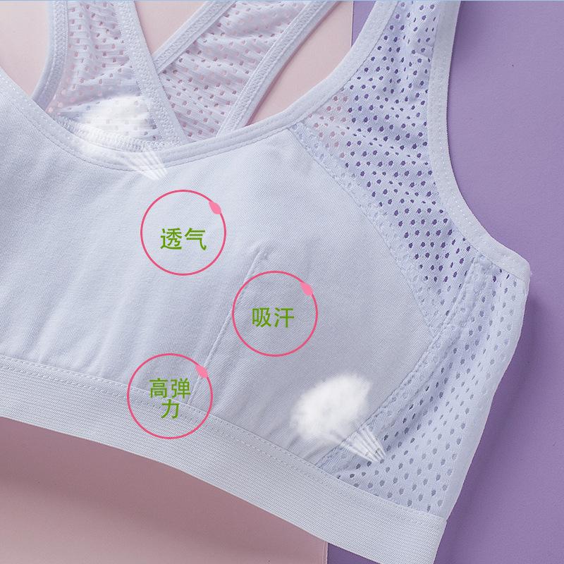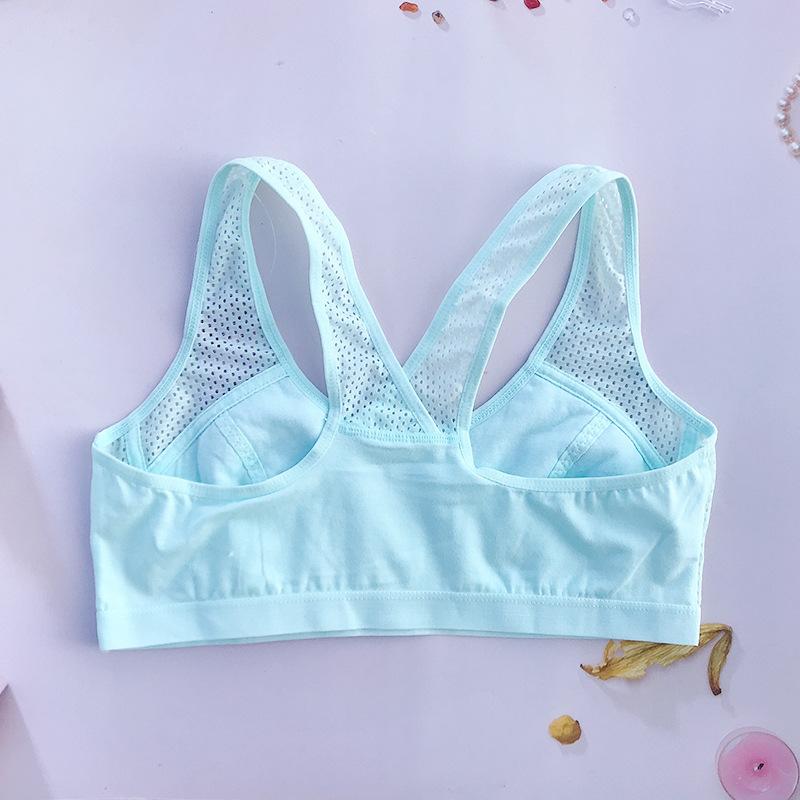 Malla transpirable de nailon 2202#, el diseñador mejoró la malla para satisfacer las necesidades de las niñas en su período de pubertad en el caluroso verano, con alas laterales huecas y tirantes anchos de alta elasticidad. Este estilo puede ser usado por personas que pesen hasta 170 libras, por lo que las chicas gorditas ya no tienen que preocuparse por no poder encontrar ropa interior adecuada. Si necesita una talla más grande, haga clic en la imagen de abajo para transferir
