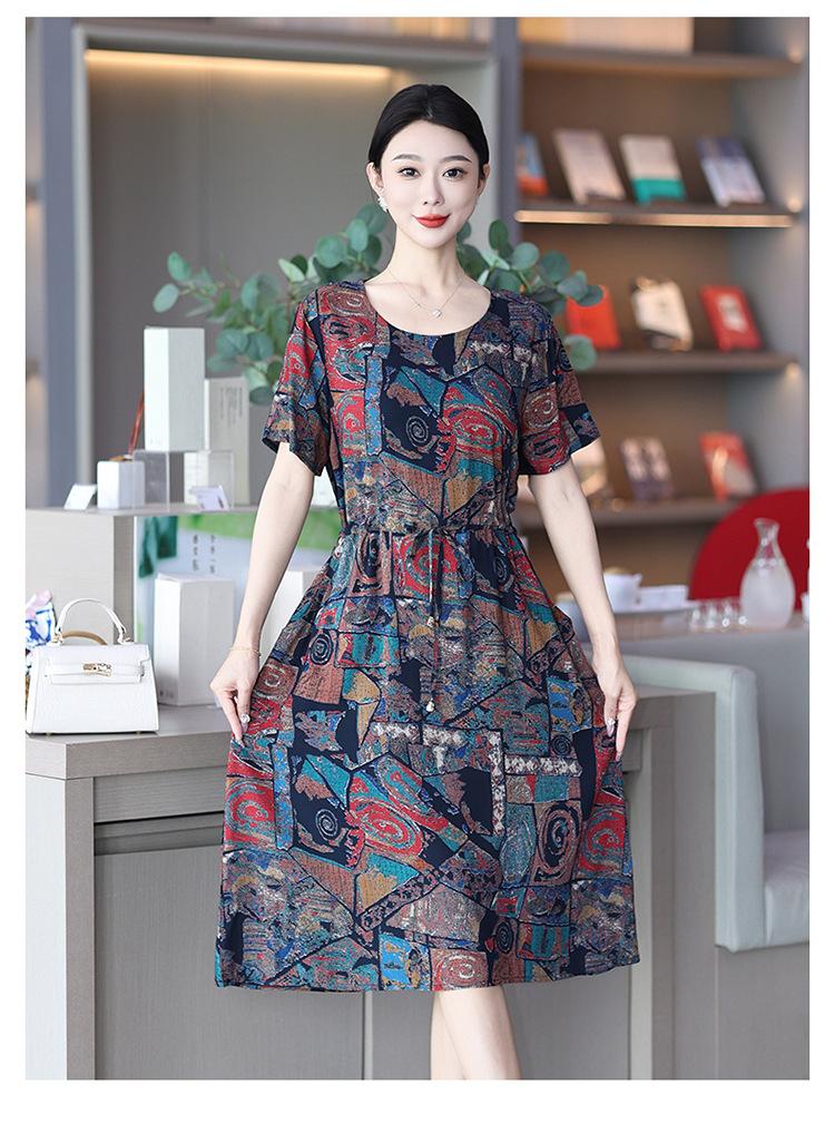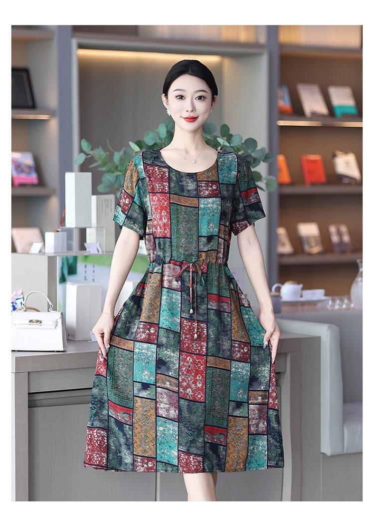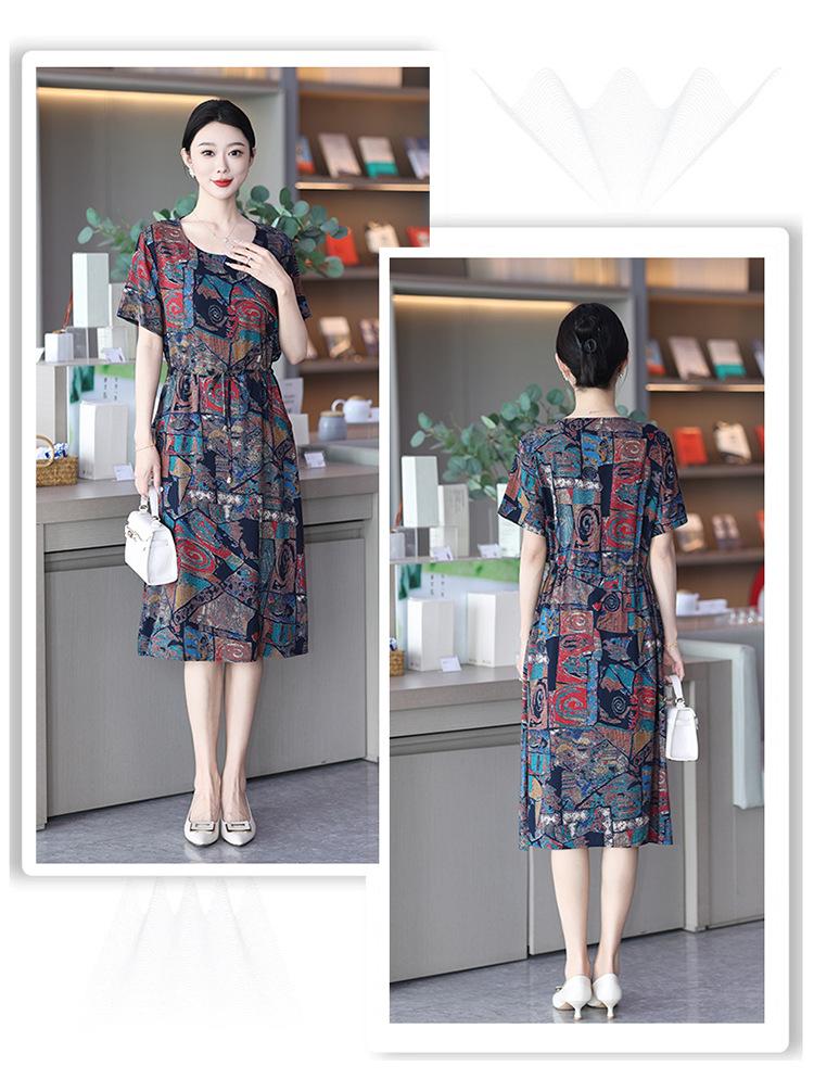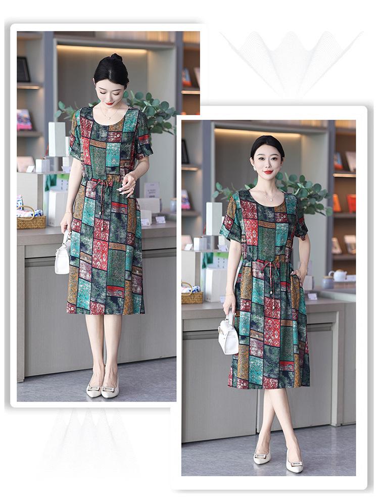 2023 novo estilo elegante vestido de seda de algodão para mães de meia idade, verão feminino plus size saia longa