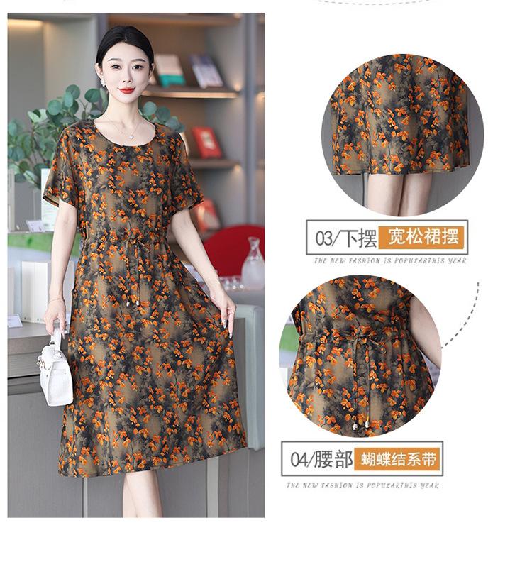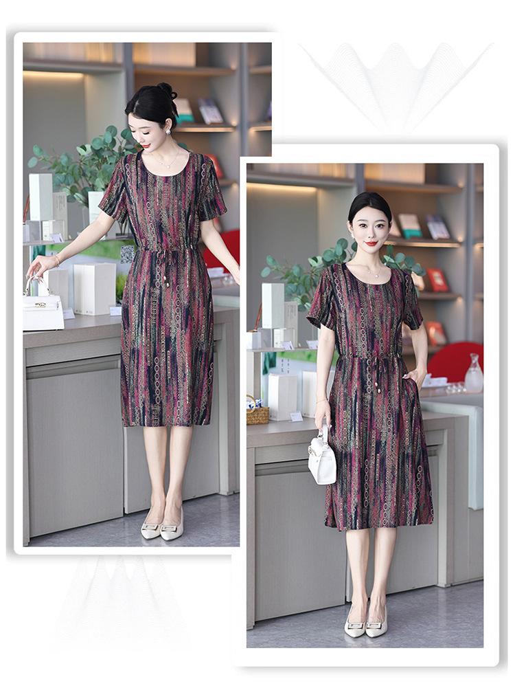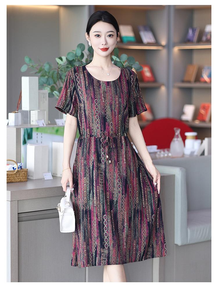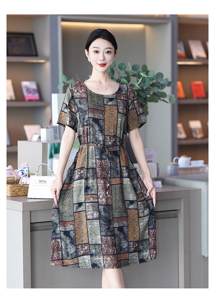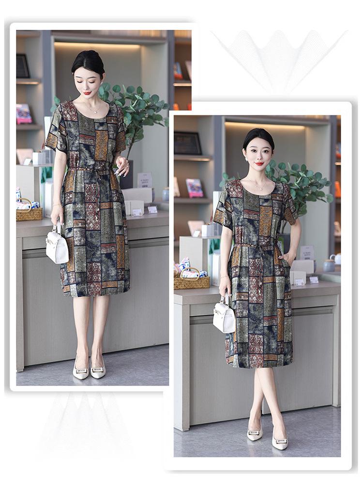 2023 novo estilo elegante vestido de seda de algodão para mães de meia idade, verão feminino plus size saia longa