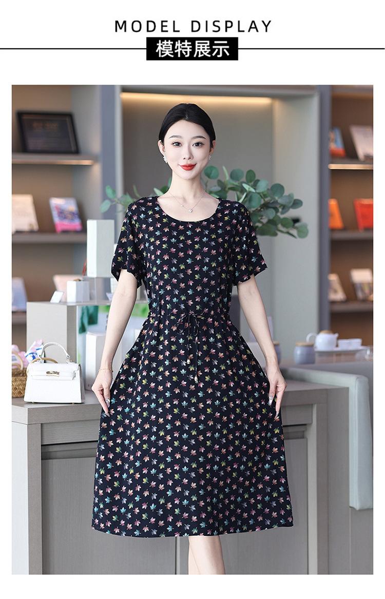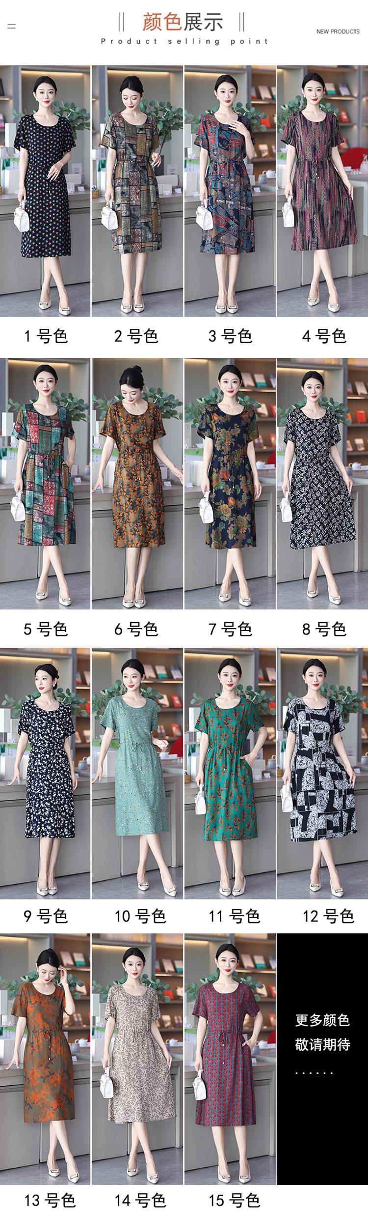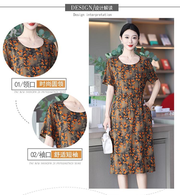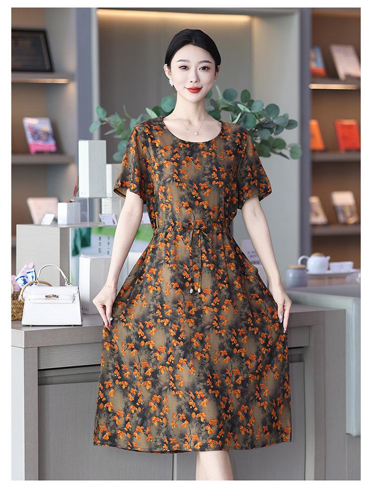2023 novo vestido de seda de algodão de alta qualidade, moda externa de verão para mães de meia-idade, saia longa estampada com bolso para parecer magra