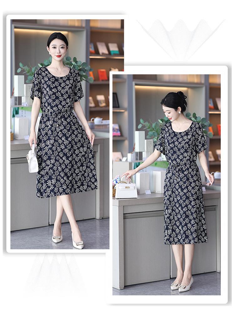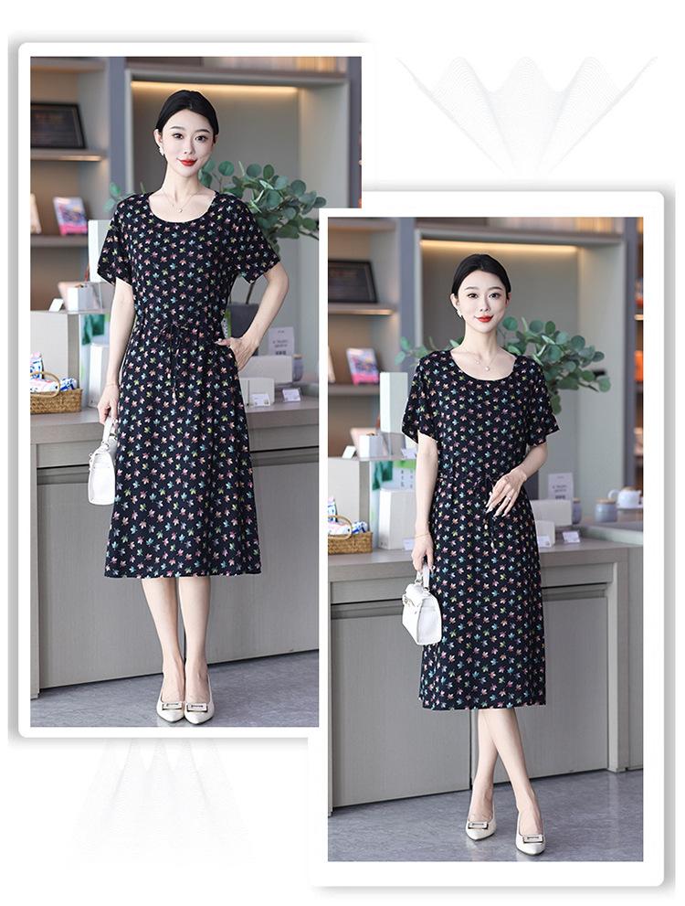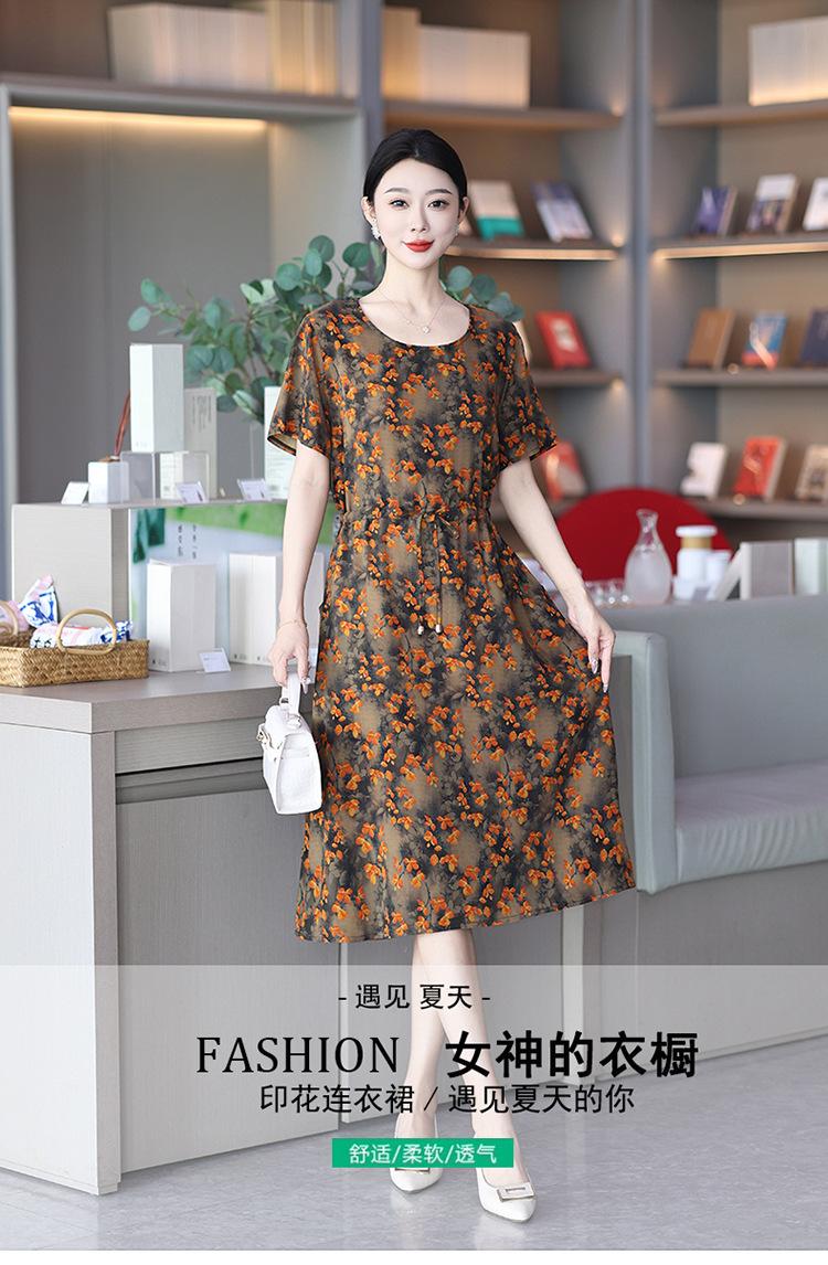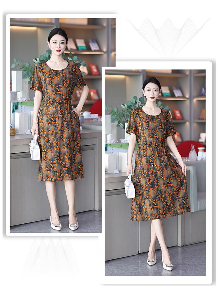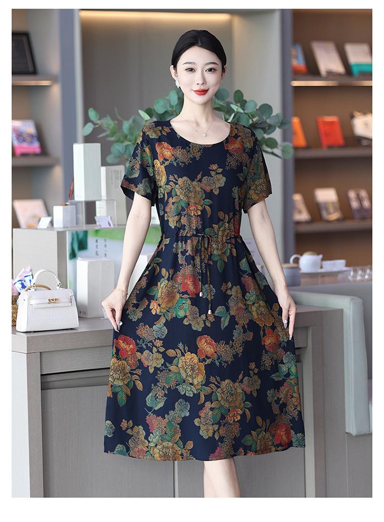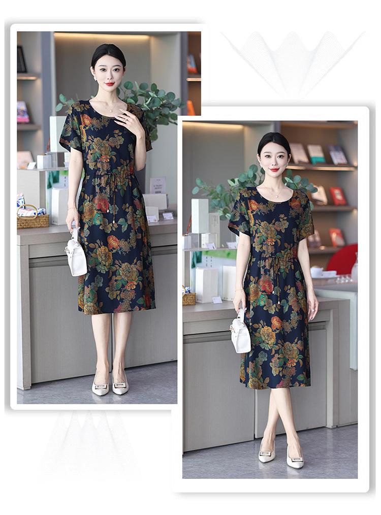 Vestido temperamento de verão de seda de algodão para mulheres 2023 nova saia requintada de alta qualidade emagrecimento mãe de meia-idade cobrindo barriga