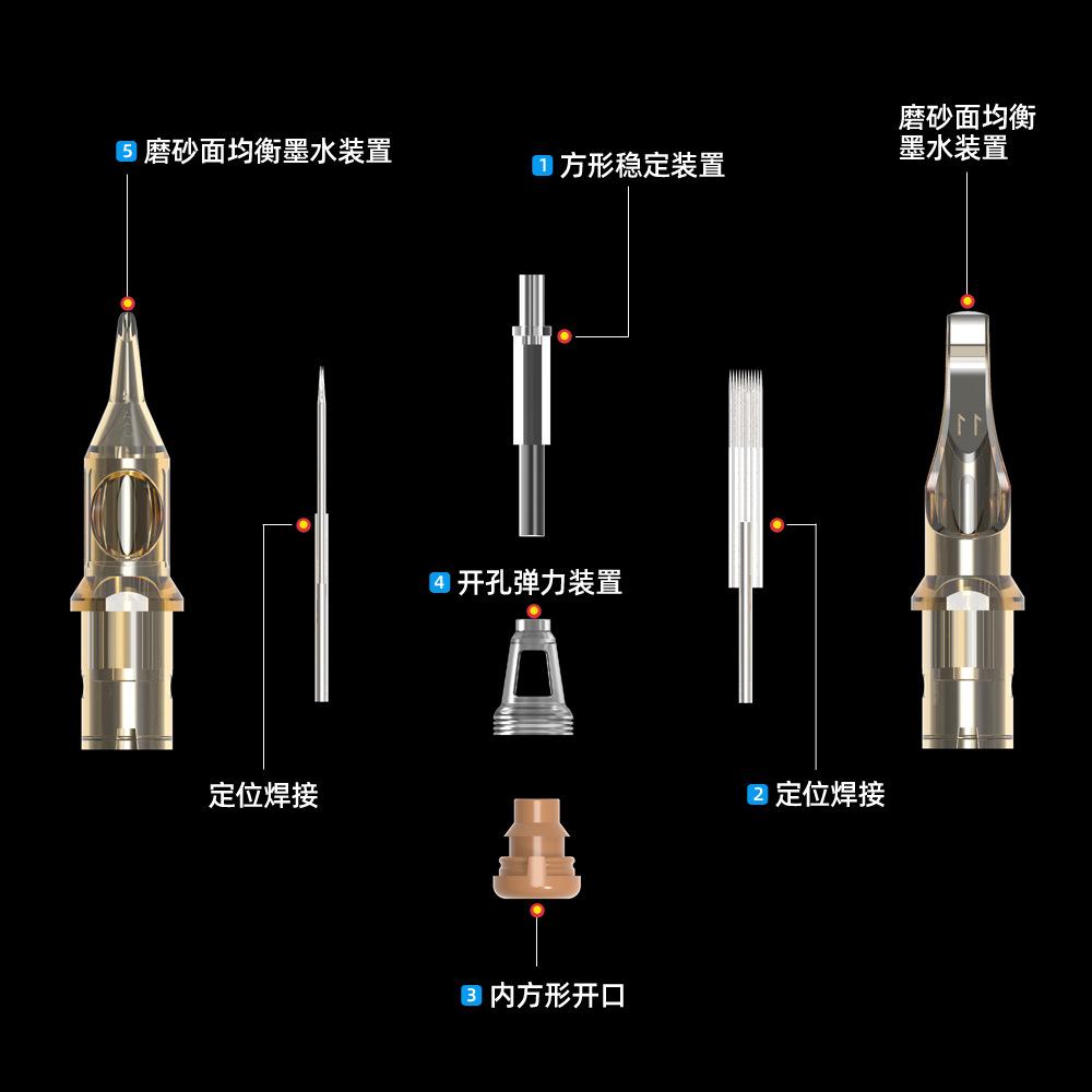 5. La punta de la aguja es de grado A. Las agujas con rebabas, torcidas, desgastadas y abolladas se seleccionan bajo un microscopio. Generalmente, solo se seleccionan 5,000 de 10,000 piezas. El segundo paso es ensamblarlas en la varilla y luego seleccionar los productos defectuosos que aparecen en el proceso de ensamblaje. El tercer paso es colocarlas en la máquina de envasado automático: se requiere que la longitud de la punta de la aguja esté uniformemente alineada, y se seleccionan las agujas con longitudes desiguales y cortes varios. Cada paso se inspecciona estrictamente;6. Nuestras agujas son agujas profesionales subdivididas, divididas en agujas RL-cerradas---agujas RLT-cerradas---agujas secundarias RLTT-cerradas---agujas RS sueltas---agujas cruzadas de doble fila M1---agujas cruzadas de doble fila MC en arco; Al mismo tiempo, podemos fabricar puntas de aguja 08--0.25, puntas de aguja 10--0.3, puntas de aguja 12--0.35, puntas de aguja 14--0.4 {nota especial que el diámetro de esta aguja es 0.35, y el diámetro de la punta de la aguja se puede cambiar según los requisitos del cliente sin cambiar el diámetro de la aguja}; 7. El color de la carcasa de la aguja y el diseño de la caja de embalaje exterior se pueden personalizar según los requisitos y preferencias del cliente.