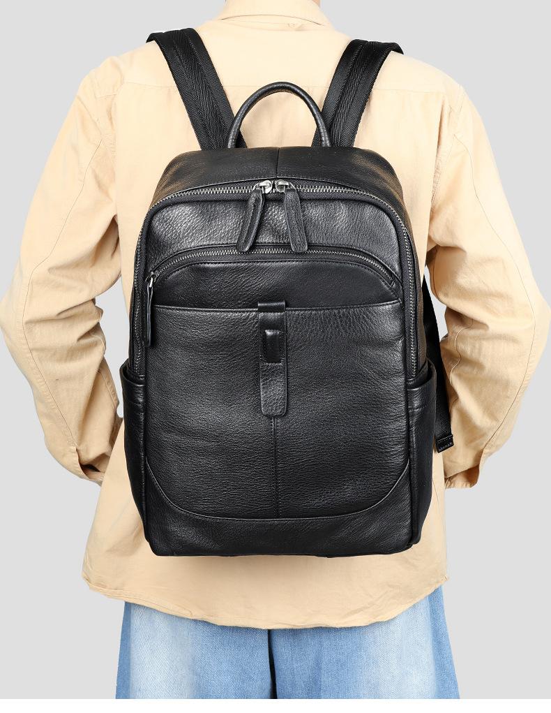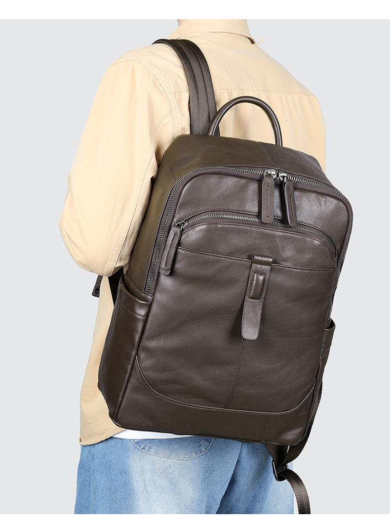 Mochila masculina de couro genuíno, bolsa escolar de grande capacidade, lazer, negócios, viagem, computador, simples, 2022, nova mochila masculina