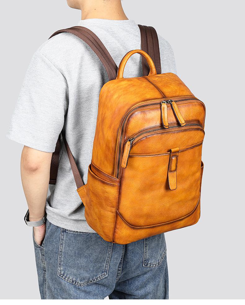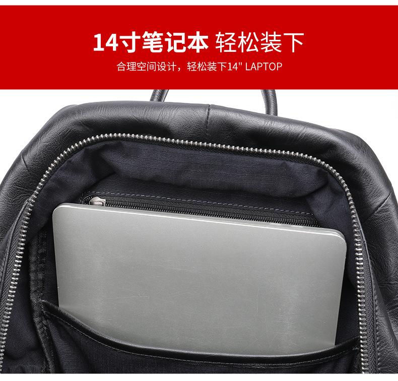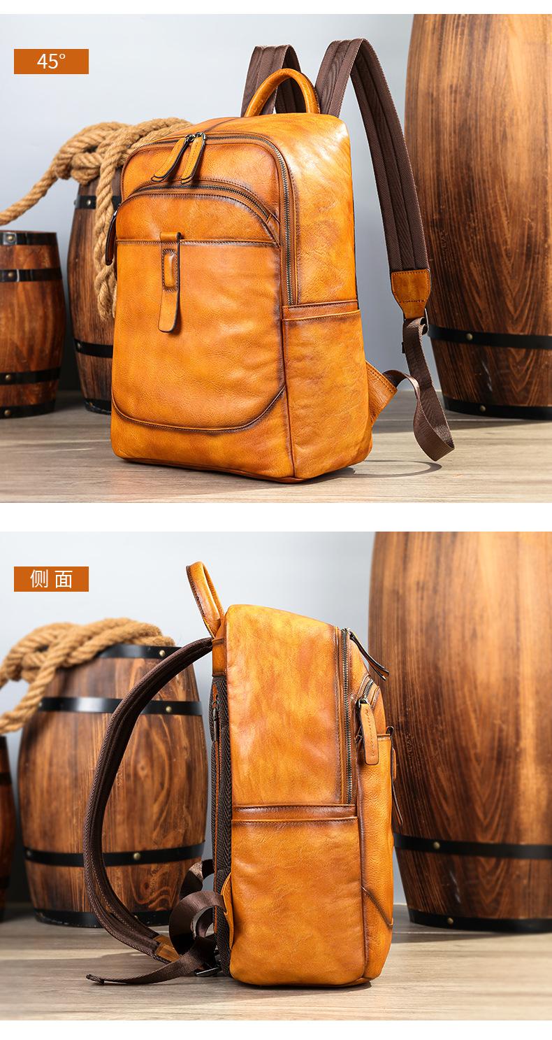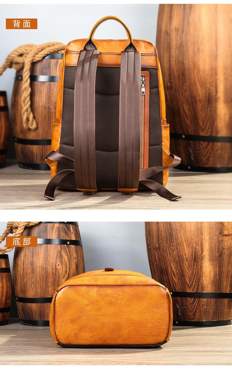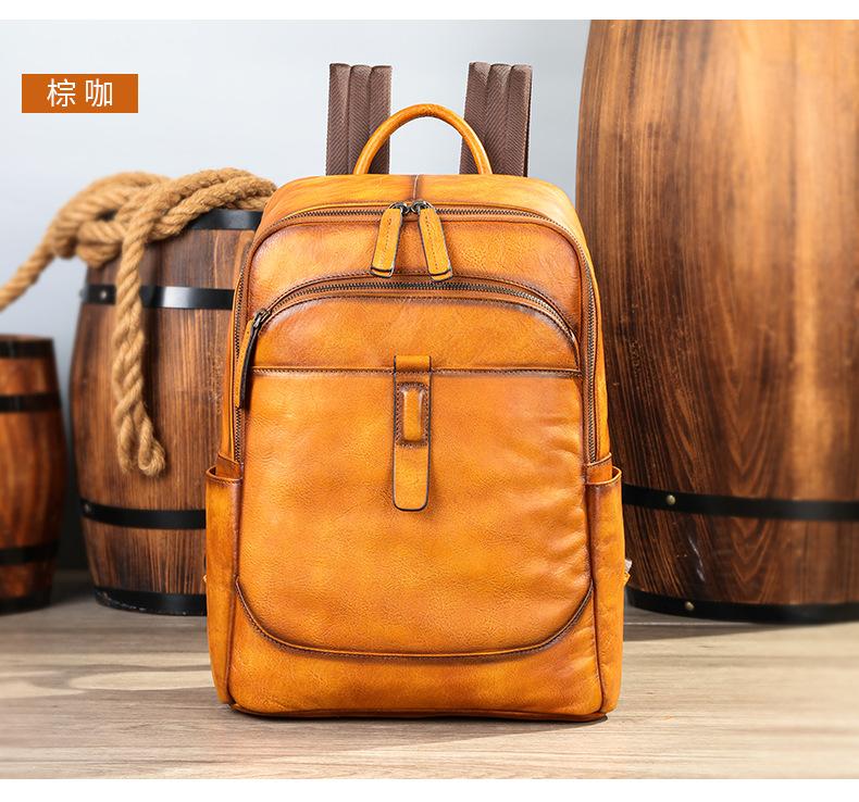 Nova mochila de couro genuíno masculina, bolsa de computador de 15.6 polegadas, cor esfregada, pasta de árvore, primeira camada de couro de vaca, atacado