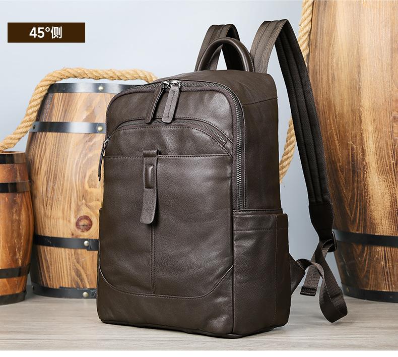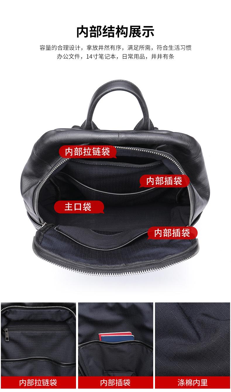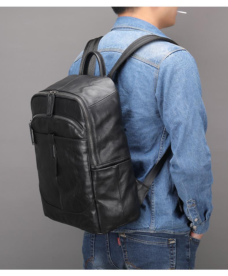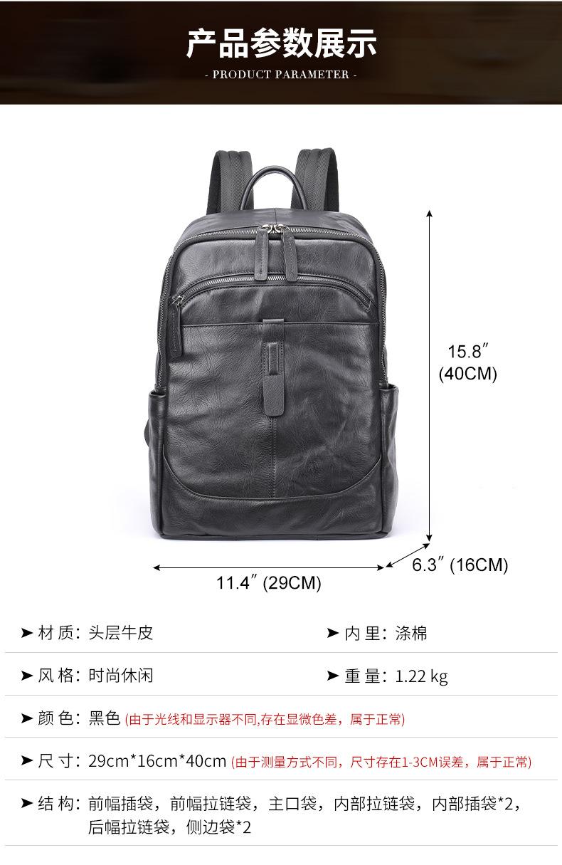 Mochila de couro de cavalo louco, mochila masculina de couro legítimo simples, mochila de viagem fashion para homens, bolsa de computador de negócios, atacado