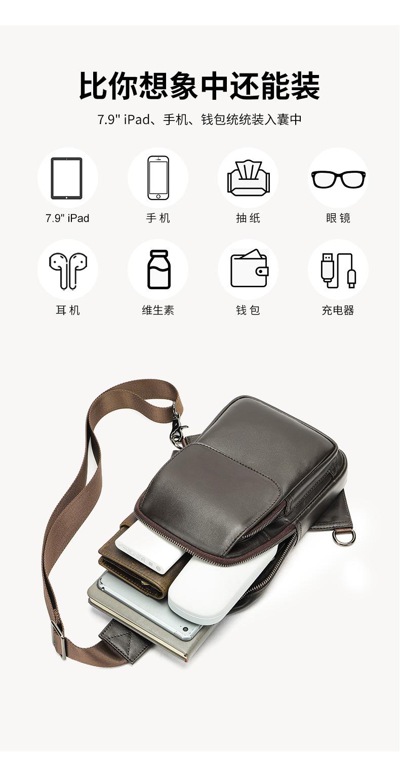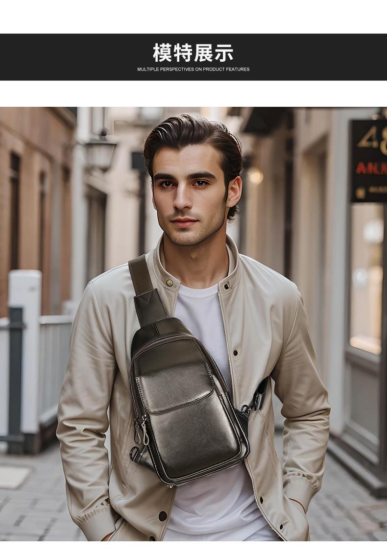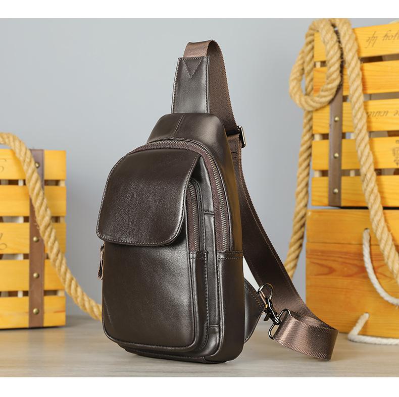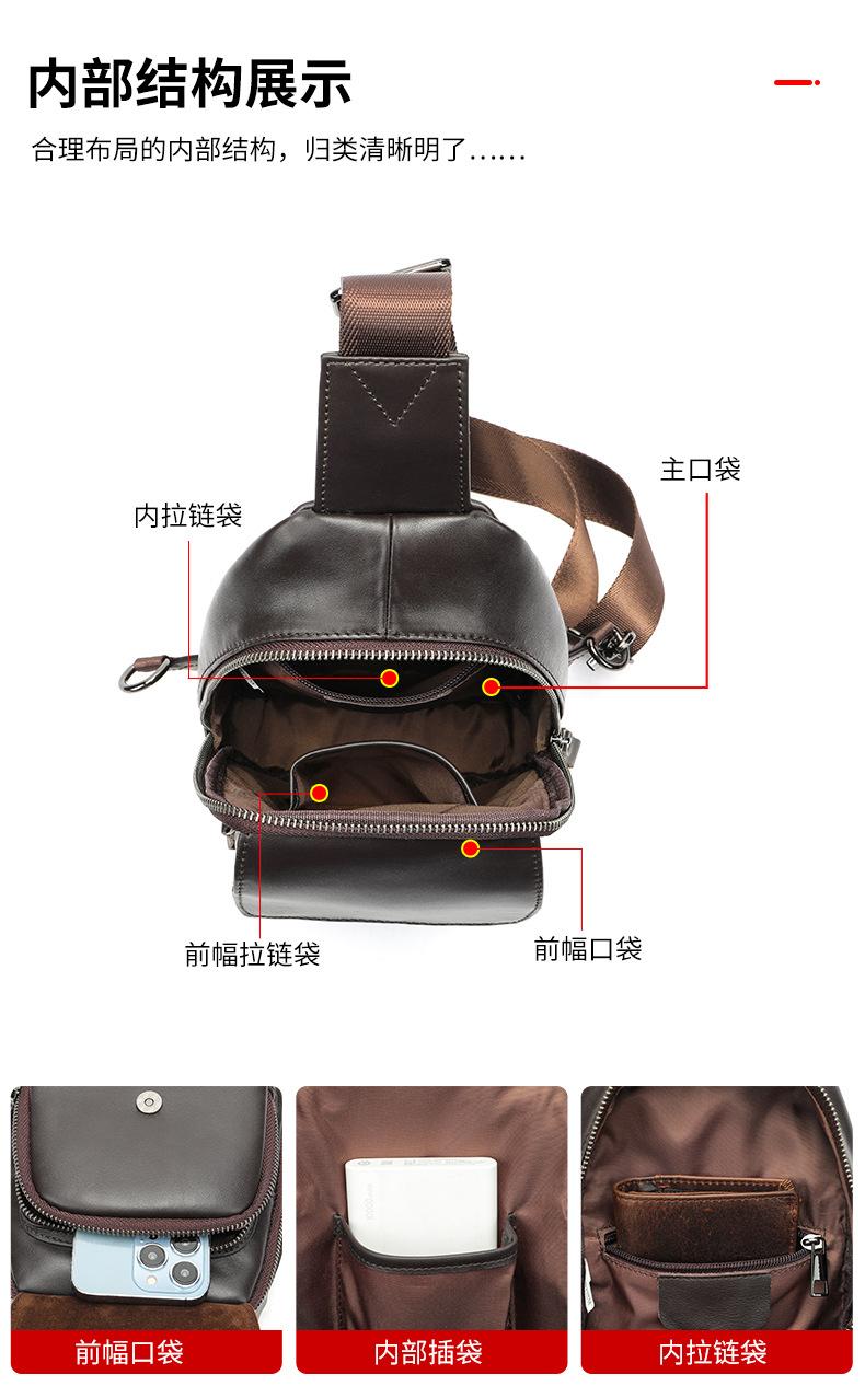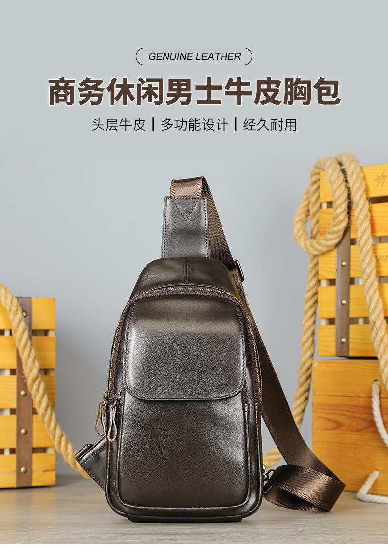 Moda masculina bolsa de peito couro genuíno grande capacidade lazer esportes crossbody bolsa de ombro masculina primeira camada de couro bolsa de peito atacado