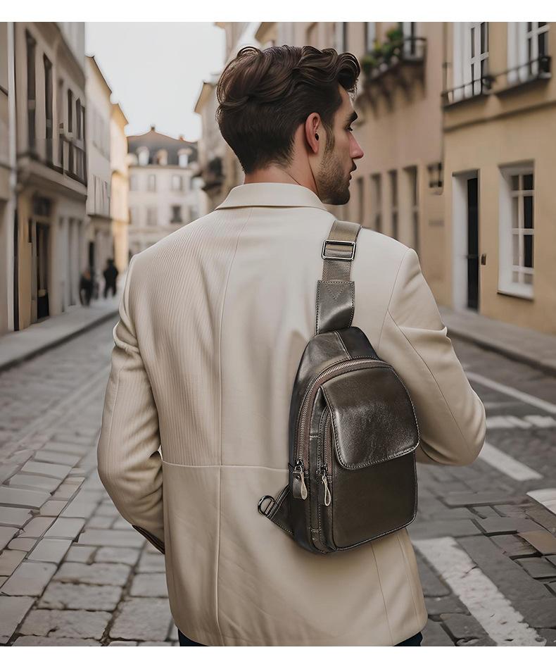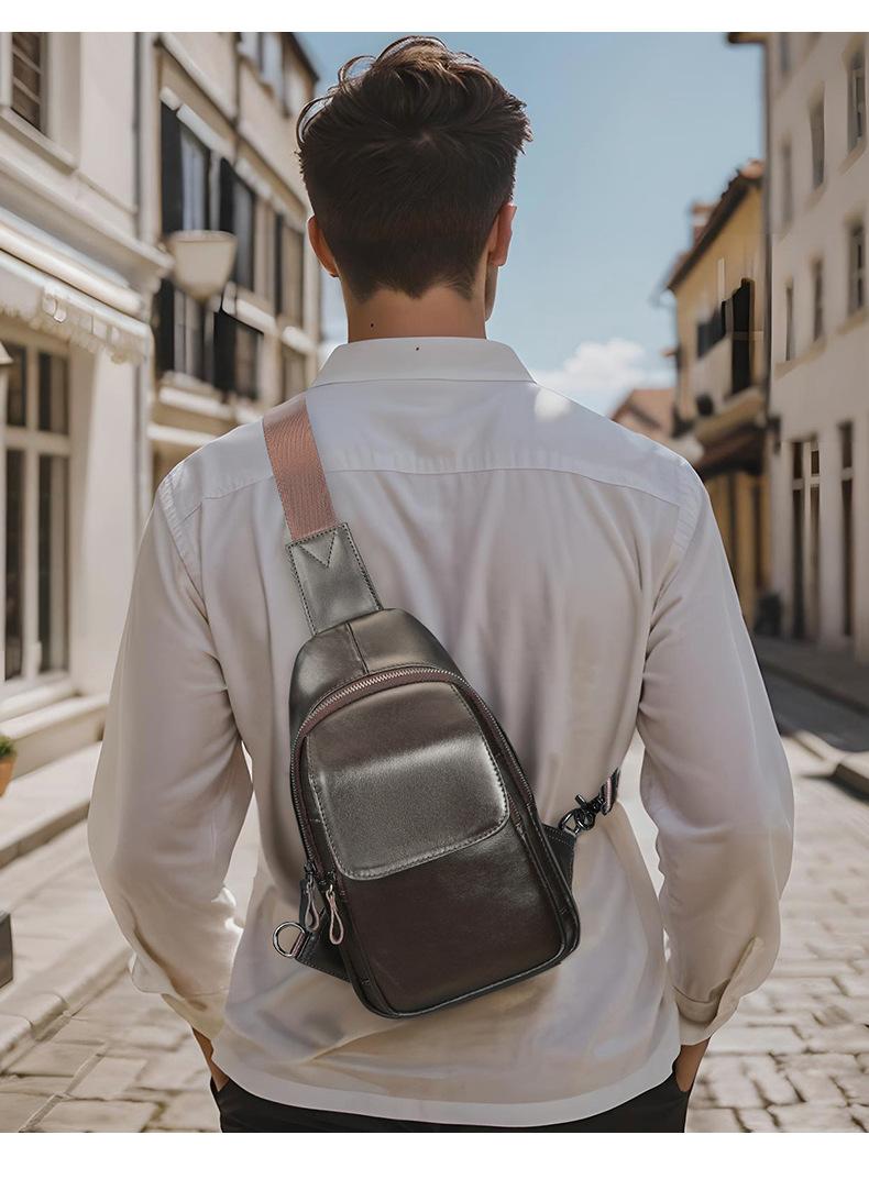 2022 nova bolsa de peito masculina de couro genuíno bolsa de ombro versão coreana casual bolsa de couro mensageiro pequena mochila na moda