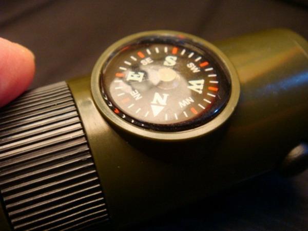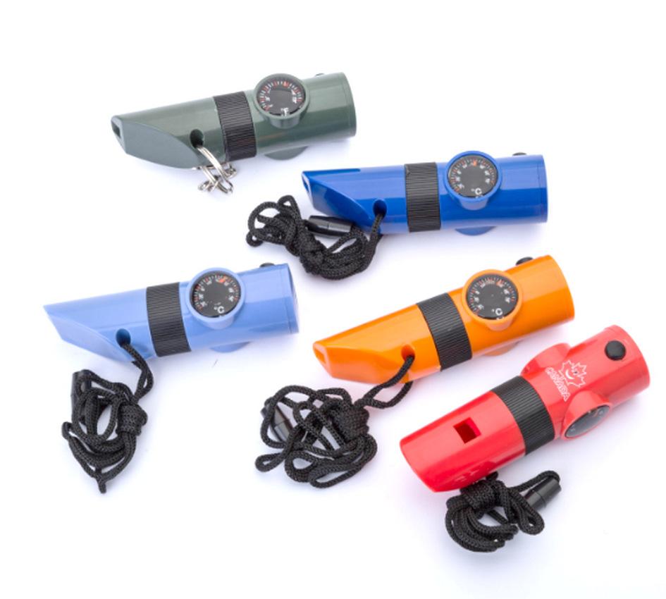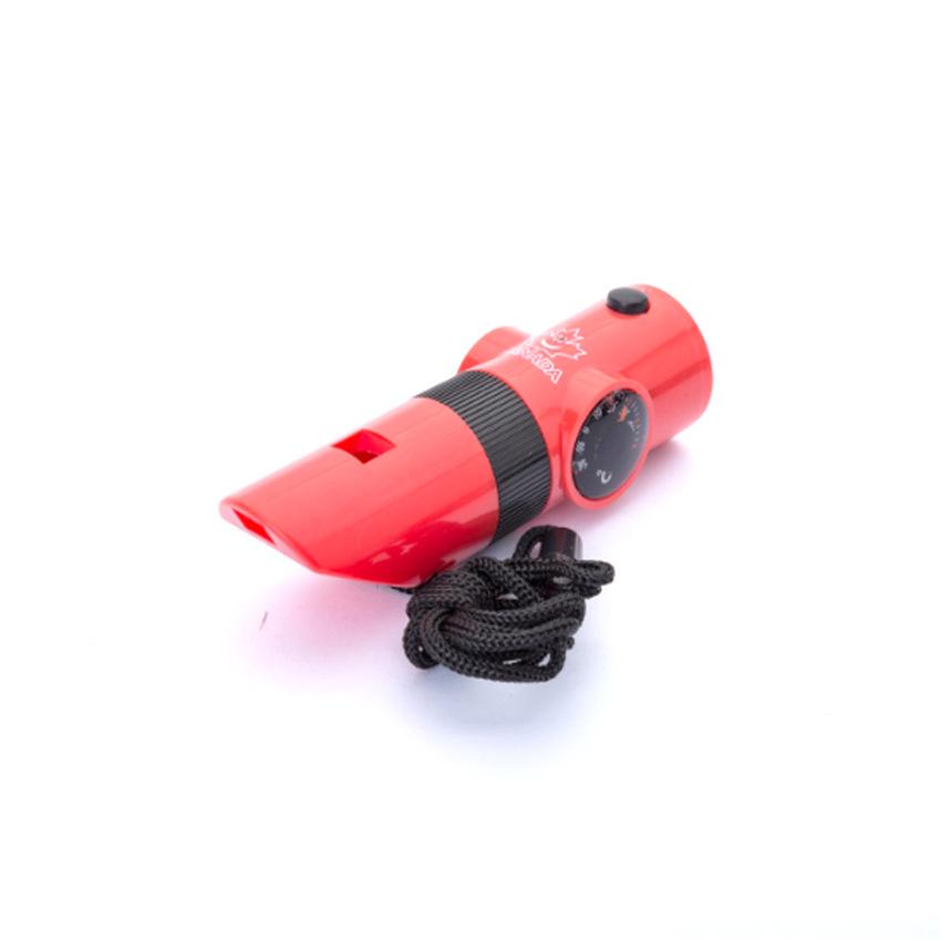 [Função] Este apito tem múltiplas funções em uma: apito, bússola, termômetro, lupa, refletor, luz LED forte, etc.