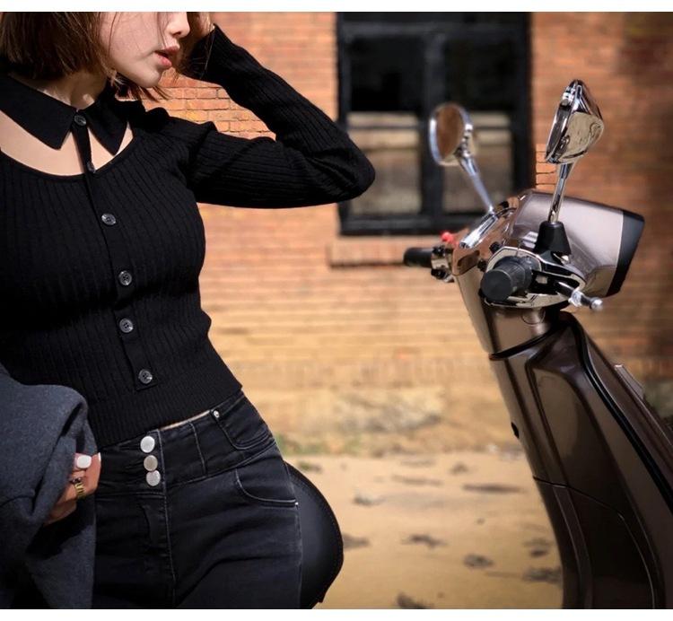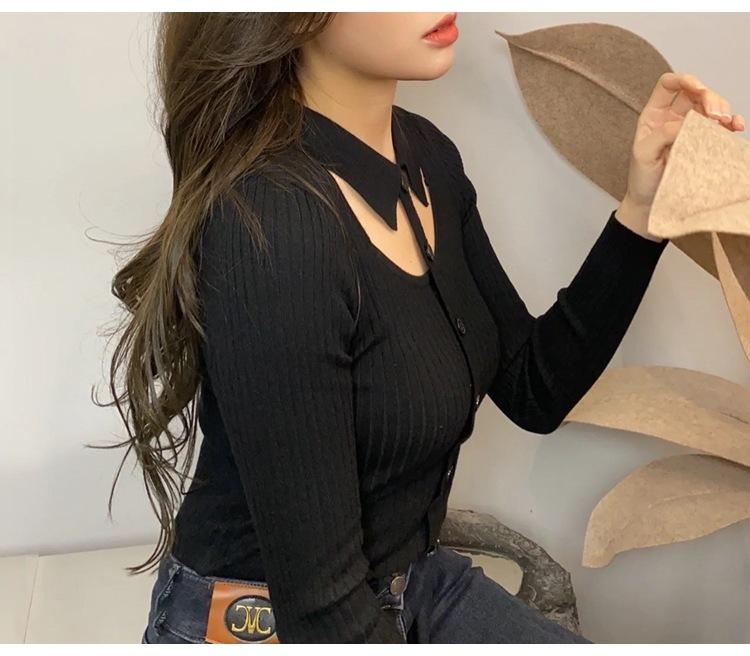 O top de malha recortado fino faz você parecer mais alto e mais magro.